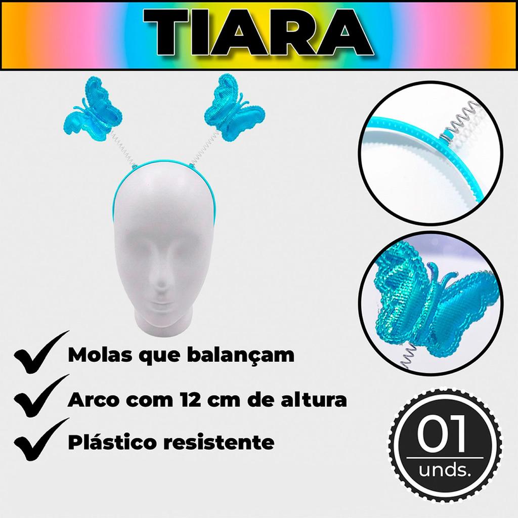 Asa de Borboleta Infantil de Carnaval Com Tiara e Varinha Azul