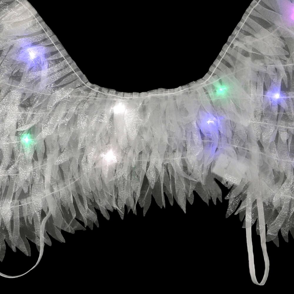 Asas De Anjo Branca Com Luzes Led Coloridas Para Fantasia Infantil