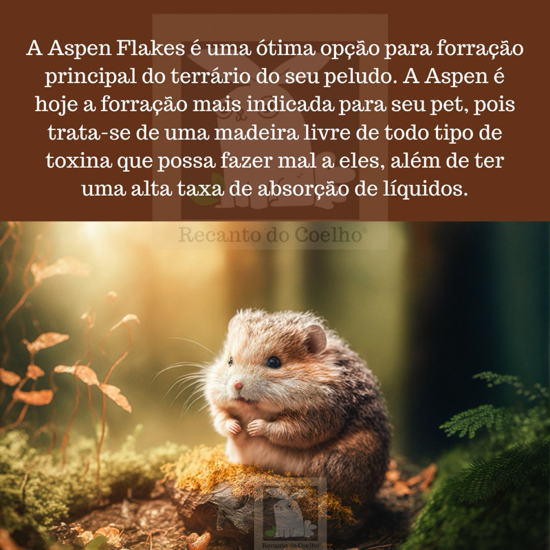 Aspen SAFE 3/4-S para Roedores e Reptéis 12,5Kg Aspen (SAFE 3-4 S) é uma forração premium sendo considerado o melhor substrato do mercado, indicada para seu pet não convencional, produzido a partir da madeira de abeto, livre de qualquer toxina ou bactéria e possui efeito antibacteriano os microrganismos não têm meio para se multiplicarem! A madeira macia possui propriedades de redução de germes e mofo devido a substâncias especiais e ao efeito desidratante da fibra da madeira. * Certificado com ISO 9001, HACCP, ISO 50001 e PEFC (Floresta sustentável); * Embalagem 12,5Kg; * Indicado para hamster sírio, anão russo, chinês, camundongo, gerbil, roedores e répteis; * Madeira Abeto (não indicado para rato twister); * Ótimo condutor de calor; * Produto 100% natural; * Produzido na Alemanha; * Substrato Premium Aspen (SAFE 3/4 S).