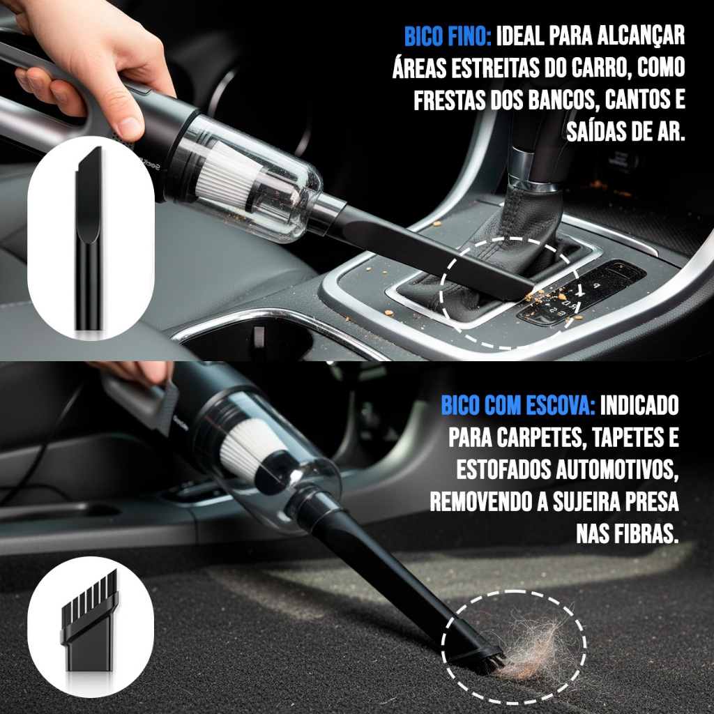 # Auto Equip # Seja bem-vindo(a)!!! --- Descrição: Aspirador de Pó Automotivo TurboLux Luxcar O Aspirador de Pó Automotivo TurboLux Luxcar é um produto completo! Com 120 w de potência é o mais forte da categoria, nunca um aspirador de pó 12 volts foi tão potente! Acompanha 3 incríveis acessórios: Escova, Bico para Cantos e Frestas e Tubo Prolongador. Ergonômico, possuí cabo com mais de 2.60 metros de comprimento. Vantagens: - 12 v / 120 w Fácil de usar, é só ligar na tomada 12 v do carro! O mais potente da categoria! - Capacidade Seu copo lavável tem 500 ml de capacidade, limpa todo o carro de uma só vez! - Compacto Pode ser levado no carro, para usar sempre que precisar. - Prático Seu carro sempre limpo em qualquer lugar! Modo de usar: - Verifique para que o cabo de força esteja completamente desenrolado. - A ignição do veículo deve estar ligada antes de plugar o Aspirador de Pó Automotivo TurboLux Luxcar no acendedor de cigarros. - Para ligar, use o interruptor LIGA/DESLIGA localizado no topo do seu Aspirador de Pó Automotivo TurboLux Luxcar. - Para limpar pequenos espaços, cantos e frestas, utilize o bocal. O bocal é facilmente encaixado na frente do Aspirador de Pó Automotivo TurboLux Luxcar. - Para esvaziar o reservatório de pó: segure o Aspirador de Pó Automotivo TurboLux Luxcar em ângulo descendente (com o reservatório voltado para baixo, para que ao abrir a sujeira não caia no chão) e aperte firmemente com o dedo polegar o botão de encaixe. O reservatório se separará do corpo e poderá ser esvaziado facilmente. Conteúdo da Embalagem: - 01 Aspirador de Pó Automotivo TurboLux Luxcar Importante - Garantia de 03 meses; - Pedidos aprovados até 12h00 de segunda a sexta será enviada no mesmo dia; - Enviamos em até 24h úteis; - Imagens meramente ilustrativas; - A cor do produto pode variar de acordo com a tela do seu smartphone ou computador; - Utilize o campo de "Perguntas e respostas" e esclareça suas dúvidas com nosso suporte técnico.