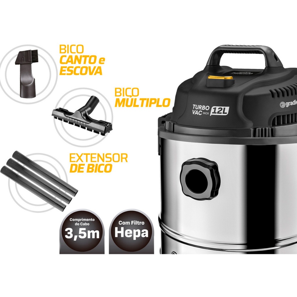 Aspirador De Pó E Água Inox Multiuso Com Soprador Turbo 12l 1200w Gradiente