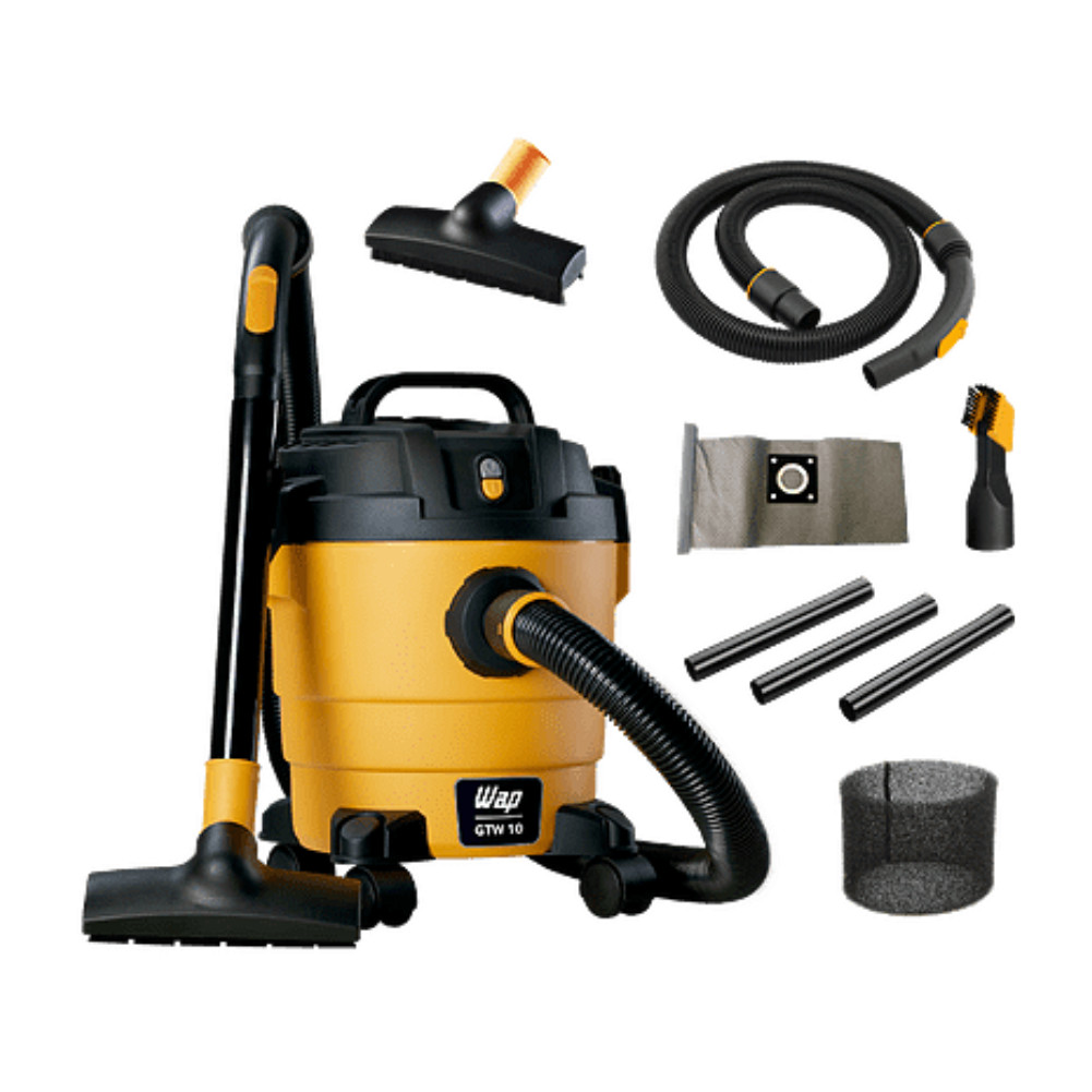 Aspirador de Pó e Água WAP GTW 10 - 220V O Aspirador de Pó e Água WAP GTW 10 é um equipamento versátil e eficiente, ideal para a limpeza do dia a dia. Com design compacto e diversas funcionalidades, ele oferece praticidade e agilidade na remoção de sujeiras secas, úmidas ou líquidas, tanto em ambientes internos quanto externos. Principais Vantagens: - Multifuncionalidade: Aspira pó e água, adaptando-se a diferentes tipos de limpeza. - Alta Potência: Motor de 1400W garante alta capacidade de sucção. - Reservatório de 10 Litros: Permite limpar grandes áreas sem interrupções. - Função Soprador: Auxilia na limpeza de áreas externas e locais de difícil acesso. - Filtro Lavável: Filtro de pano e espuma, reutilizáveis e fáceis de limpar. Ficha Técnica: - Marca: Wap - Acessórios: 1 Bico canto e escova; 1 Mangueira de 1,5 m; 3 extensores de plástico; 1 Bico múltiplo para carpetes e piso frio; 1 Filtro de espuma lavável; 1 Filtro de pano lavável. - Componentes: Cabo elétrico 2 metros; Alça para transporte; 4 Rodízios para transporte; Porta acessórios; Boia para proteção do motor; Bocal de sopro; Regulagem de sucção. - Cor: Amarelo com Preto. - Tensão/Voltagem: 220V (NÃO É BIVOLT) - Função de sopro bocal. - Capacidade (líquidos / sólidos): 3,4 L / 7 L - Peso bruto: 4,3 kg - Comprimento cabo elétrico: 2,5 m - Frequência: 60 Hz - Nível de ruído: 92 dB(A) - Garantia: 12 meses. Observação: Os acessórios menores vêm dentro do tambor amarelo.