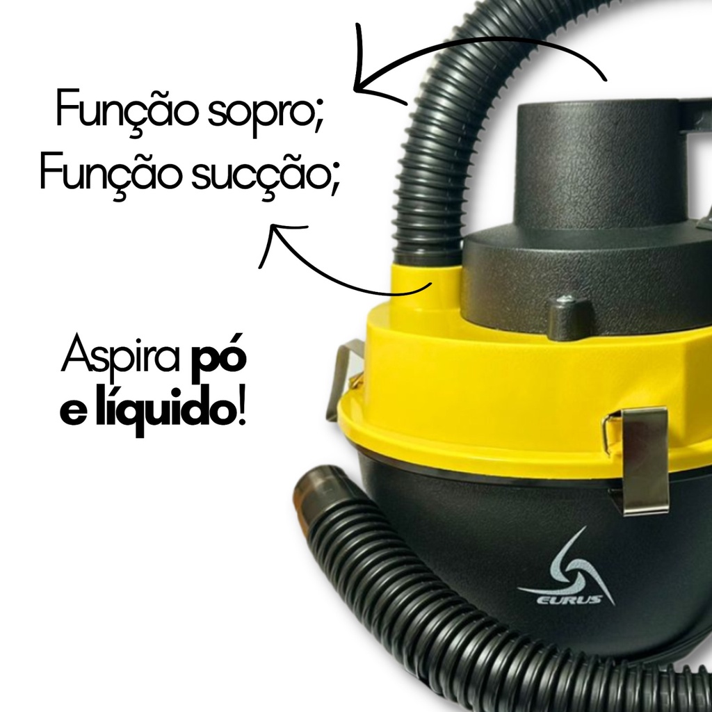 INFORMAÇÃO IMPORTANTE: UTILIZAR O PRODUTO COM O CARRO LIGADO. Vaccum Cleaner Eurus Para você que gosta de viajar e faz limpezas de maneira recorrente no seu carro, a Eurus desenvolveu um produto para te auxiliar nesses momentos. O lançamento Vaccum Cleaner traz a possibilidade de aspirar sólidos e líquidos com a mesma eficiência, se tornando um item indispensável para quem tem um veículo. Com três modelos de bicos extras, o produto traz versatilidade e facilidade para sua viagem, além de também encher pequenos infláveis, como boias e colchões, por exemplo. Especificação técnica: Tipo: Portátil; Aplicação: Automóveis, Caminhões, Barcos e Trailers (Que sejam 12V DC); Cor: Amarelo/Preto; Alimentação: 12V DC (conector veicular); Tensão de trabalho: 11V ~ 15.5V DC; Potência: 90 W; Motor de cobre; Botão liga/desliga: Sim; Capacidade do coletor de poeira: 2 L; Aspira sólido: Sim; Aspira água: Sim; Filtro removível: Sim (pode ser lavado e reutilizado); Bico adaptador extensor: Sim (indicado para locais de difícil acesso); Alça para transporte: Sim; Comprimento do cabo de alimentação: 270cm (Aproximadamente); Comprimento da mangueira: 90cm; Inflar: aplicação para pequenos e breves serviços como por exemplo encher bóias, colchões e barracas infláveis. Garantia: 7 Dias Disponibilizados pela Shopee Conteúdo da embalagem: 01x Aspirador automotivo; 03x Bicos direcionador removível; 01x Uma escova de acoplar; 01x Mangueira removível. Dúvidas frequentes: - O Produto é novo? Sim. Nós trabalhamos apenas com produtos novos, e com garantia. - O Produto é original? Sim. Nós só trabalhamos com distribuidores homologados pelo fabricante. - O produto é igual ao da foto? Sim. Todas as fotos são fieis ao que você receberá. - Em quanto tempo recebo minha compra? É muito simples, basta colocar seu CEP no calculador de frete do anúncio. - Como faço para saber se o produto deste anúncio se aplica ao meu veículo? Na descrição do anúncio você encontra todas as informações das aplicações corretas, se a informação que precisa não está na descrição do anúncio, deixe sua pergunta que nossa equipe de especialistas está preparada para solucionar qualquer dúvida. - Tem alguma dúvida sobre o produto ou sobre a compra? Deixe sua pergunta abaixo, que responderemos prontamente. Atendimento: Nosso horário de atendimento é: 24 horas Temos uma Equipe de Atendimento e Suporte Técnico à disposição. Após a compra, caso tenha alguma dúvida ou algum problema com o seu produto, entre em contato conosco utilizando os canais informados pelas mensagens de pós-venda ou pelo próprio chat de atendimento. • O cumprimento do prazo de entrega é de total responsabilidade da Transportadora e esse prazo é informado no momento da compra podendo ser alterado por condições logísticas. Importante: • Somos Loja Oficial Shopee; • Todos os nossos produtos são checados e bem embalados antes da expedição. • Recomendamos sempre que toda e qualquer instalação seja realizada por profissionais especializados para evitar problemas futuros, pois não somos responsáveis pela má instalação ou mau uso do produto. • Confira se os dados cadastrais estão atualizados, principalmente se o endereço de entrega está correto para evitar que o seu produto retorne e mantenha o número de contato atualizado para que possamos entrar em contato caso necessário. Quem somos: Somos uma empresa, localizada no Rio de Janeiro, com mais de 50 anos de mercado no segmento de atacado e distribuição de Auto Parts em geral. Hoje, a Rhino conta com mais de 10.000 produtos em seu portfólio nos segmentos de refrigeração automotiva, arrefecimento automotivo, suspensão automotiva, mecânica em geral, moto parts e acessórios automotivos. RHINO AUTOPARTS - O Maior E-commerce de Autopeças e Acessórios Automotivos do Brasil