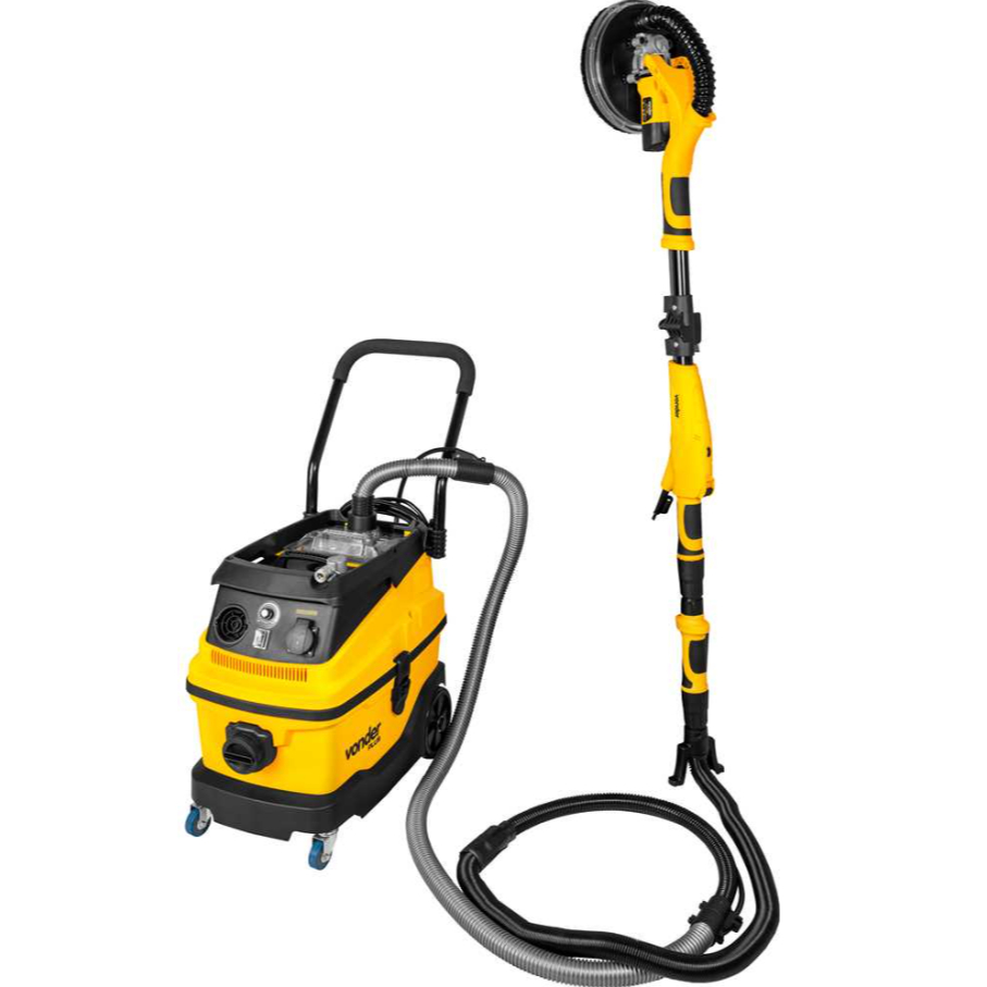 Indicado para uso profissional. Aspira sólidos, líquidos e partículas finas. Utilizado principalmente em conjunto com lixadeiras de parede (girafas), amplamente utilizado no lixamento de paredes com massa corrida, gesso, entre outros em obras e reformas. Também é encontrado em oficinas de lataria e pintura automotiva, sendo utilizado em conjunto com lixadeiras pneumáticas. Pode ser utilizado também como aspirador convencional para sólidos e líquidos. Retirar o filtro (lavável) de proteção do motor, somente na aspiração de líquidos. Bocal superior somente para sucção de partículas finas e bocal frontal para sucção de partículas sólidas e líquidos. (Lixadeiras não acompanham o produto). Com amplo reservatório com sistema de encaixe fácil, conta com dupla conexão de sucção e função soprar. Possui ainda controle ajustável de sucção de ar, rodas para transporte, filtro HEPA (Alta Eficiência em Retenção de Partículas) e cabo de transporte dobrável. Além do triplo sistema de filtragem, garantindo maior eficiência nos trabalhos, e tubo telescópico ajustável, adequando-se de forma ergonômica ao usuário. Seu sistema START/STOP permite a utilização em conjunto com uma ferramenta elétrica ou pneumática que exige extração de poeira, automatizando seu funcionamento de acordo com o uso. Conteúdo da Embalagem: 1 Aspirador de pó e líquidos 1 tubo extensor 1 mangueira de sucção convencional 1 mangueira de sucção com mangueira pneumática 1 filtro HEPA 1 filtro de espuma 1 saco coletor de pó 1 adaptador para lixadeira 1 adaptador para ferramentas elétricas 1 bocal escova 1 bocal para cantos 1 bocal rodo para aspiração de sólidos 1 bocal rodo para aspiração de líquidos. Detalhes técnicos: Modelo: APV 1600 Potência: 1.600 W Capacidade do reservatório: 30 L Tipo de aspiração do aspirador de pó: Sólidos, líquidos e partículas finas Vácuo: Aproximadamente 18,0 kPa - 180 mbar Segue norma: IEC 60335-1 e IEC 60335-2-2 Frequência: 60 Hz Dimensões (C x L x A): 600 mm x 375 mm x 575 mm Peso: 16,0 kg Comprimento do cordão elétrico: 4 m
