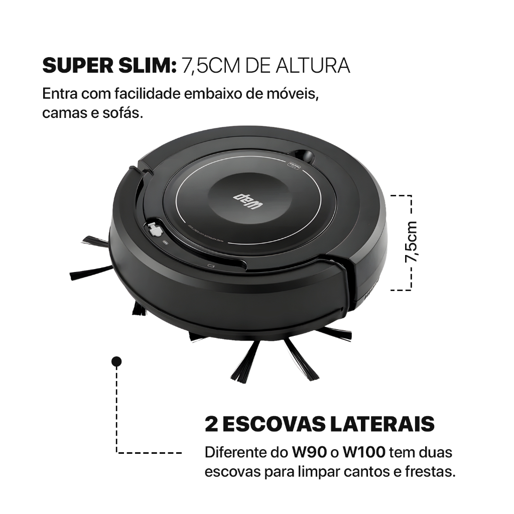 | Aspirador de Pó Robô WAP Robot W100 3 em 1 Antiqueda Bivolt 17W este produto | R$ 449,99 | 38% | 4.9/5 | 4.1 mil |
