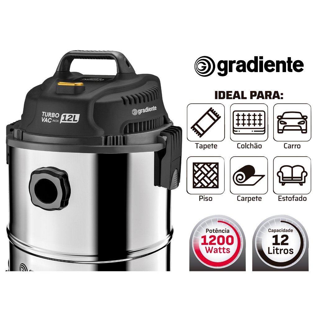 Aspirador De Pó Turbo Vac Gradiente Inox 12 Litros 1200w