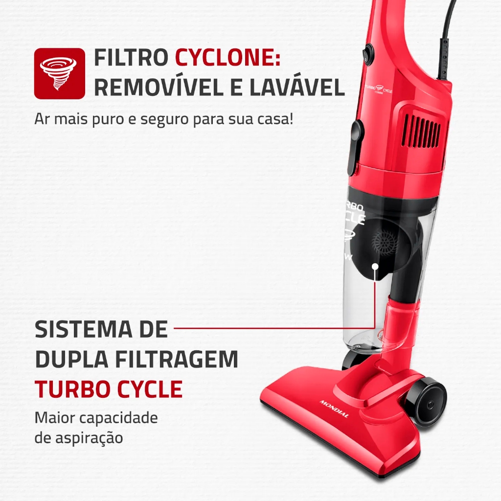 Aspirador de Pó Vertical, Portátil, Mondial, Turbo Cycle, AP-36, 1100W, 127V - VERMELHO/PRETO