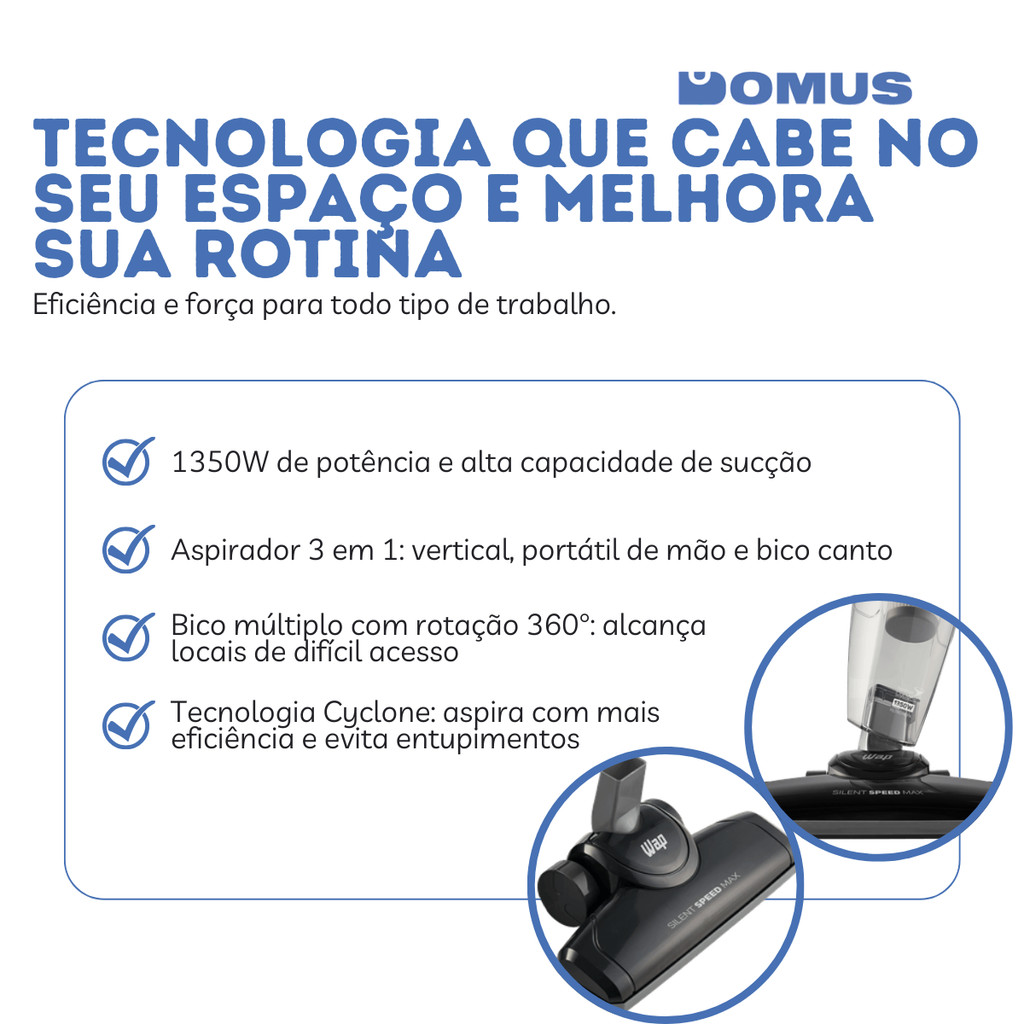Aspirador de Pó WAP Silent Speed MAX 3 em 1 1350W Vertical e Portátil