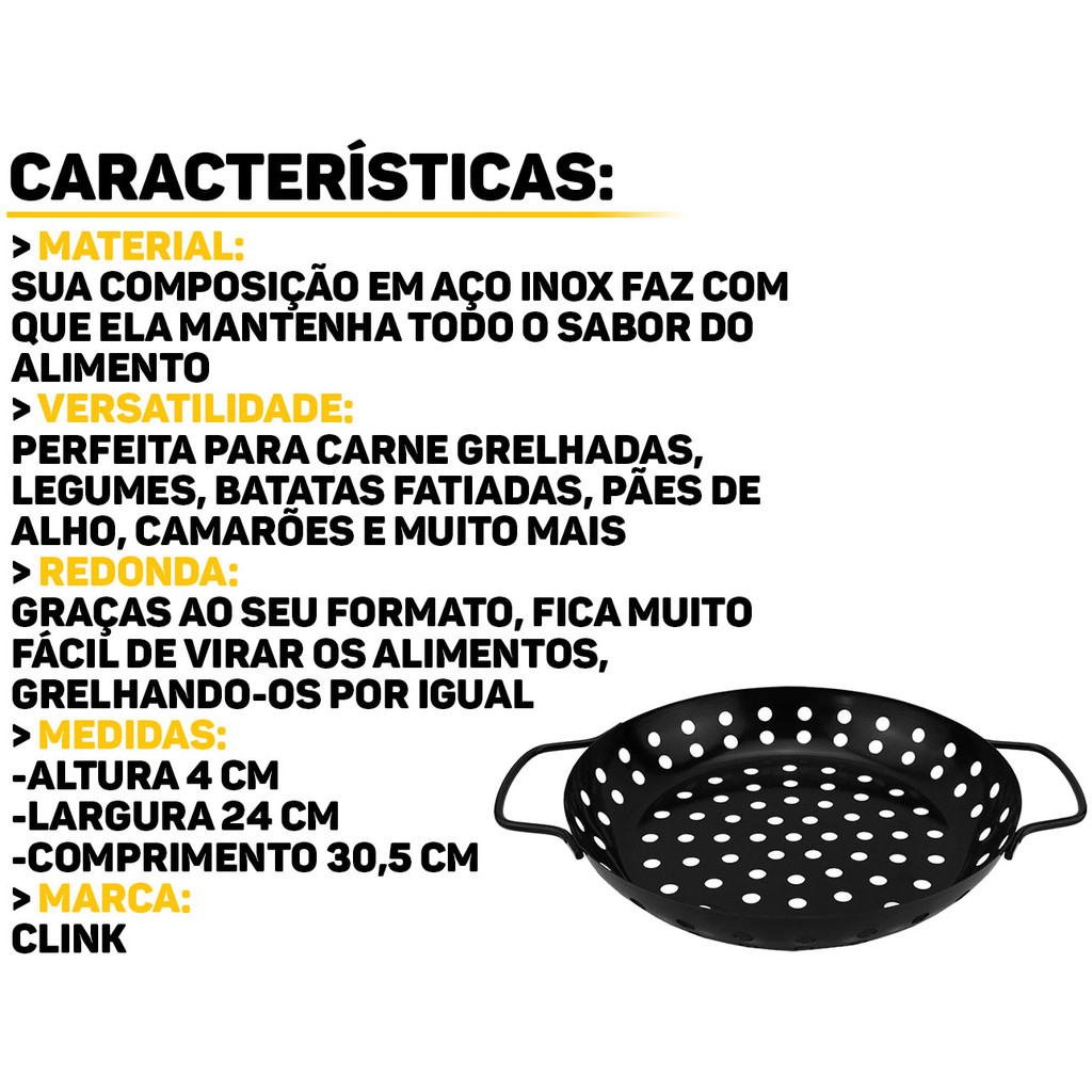 | Assadeira Metal Com Furos Redonda Bandeja Antiaderente Churrasqueir... este produto | R$ 43,77 | 34% | 4.6/5 | 1 |