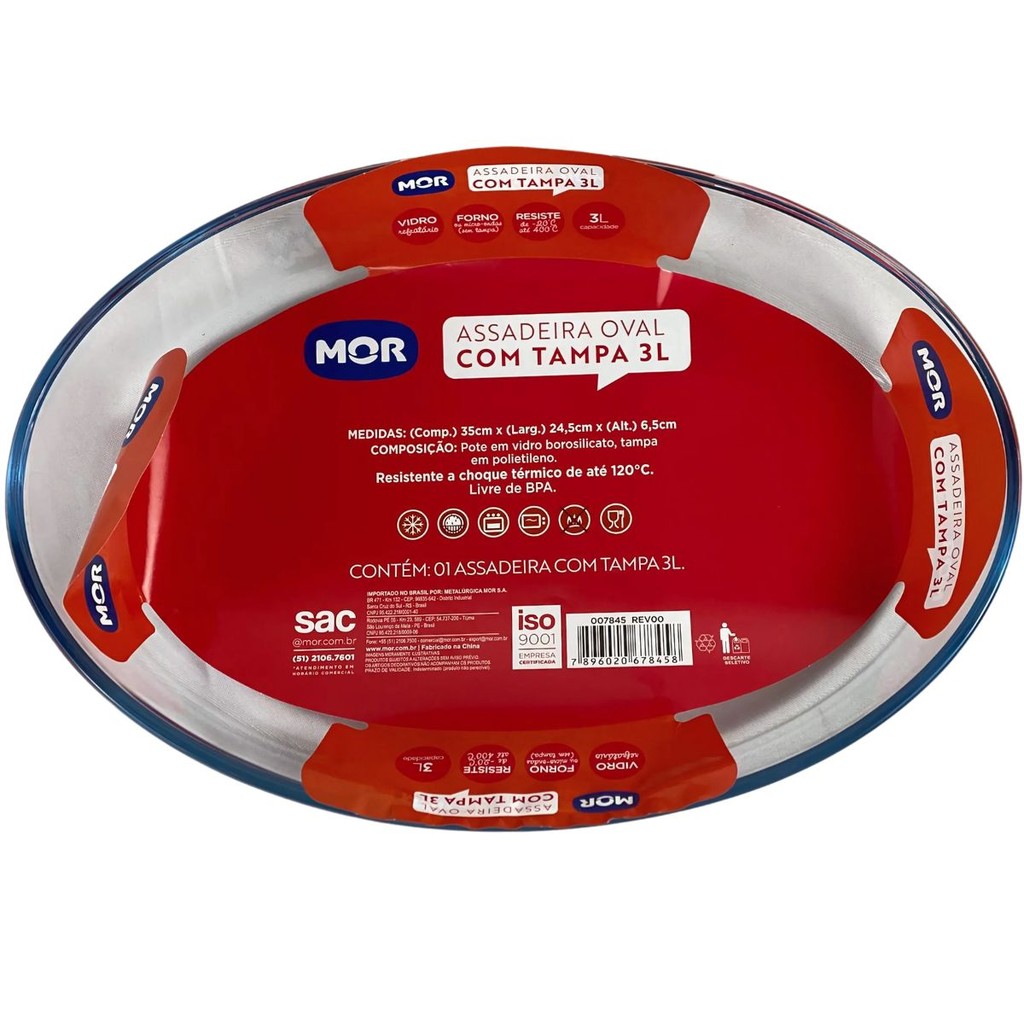 Assadeira Oval De Vidro Com Tampa 3L 07845 - Mor