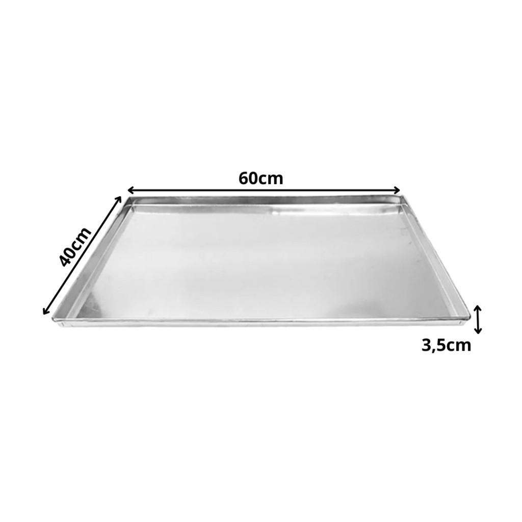 Assadeira Para Pão Doce 60x40x3,5cm Alumínio 0,5mm Resistente Bandeja