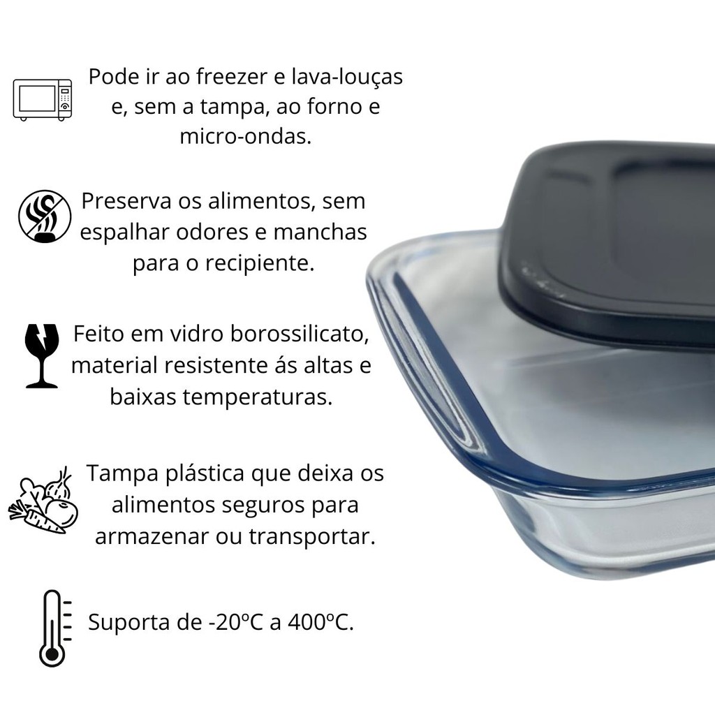 Assadeira Retangular De Vidro Com Tampa 3L 07832 - Mor