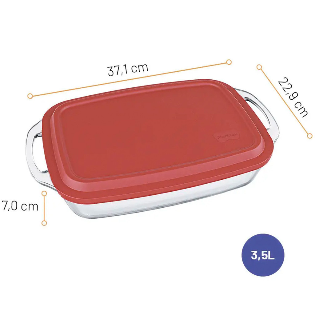 Assadeira Retangular de Vidro Marinex Seletta com Tampa 3,5L - Nadir