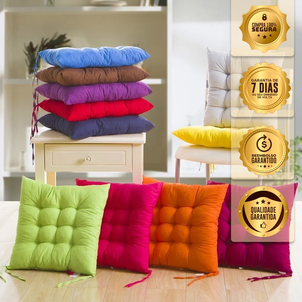 Ideal para complementar a decoração e deixar as cadeiras e bancos da sua casa ainda mais confortáveis, o assento futton possui formato quadrado e fitas em sua parte posterior para amarrar no encosto do móvel. Uma ótima opção para adicionar um toque de cor ao ambiente e mudar o mood da decoração, sem precisar fazer grandes mudanças. Especificações Técnicas: Tamanho: 40cm de largura x 40cm comprimento Composição: 100% Poliéster Enchimento: 100% poliéster A almofada tem duas cordas para amarrar Instruções de uso e lavagem Limpeza à Seco Não Lavar à mão Não alvejar Não secar em tambor Não lavar em máquina Não passar a ferro Perguntas Frequentes: MINHA COMPRA É SEGURA ? Toda a transação na plataforma Shopee é feita em um ambiente seguro, isso significa que se a caso ocorra algum imprevisto o Shopee fará o estorno de seu pagamento. TENHO GARANTIA DO PRODUTO ? Oferecemos 30 dias de garantia contra qualquer defeito de fabricação. POSSO DEVOLVER CASO EU NAO GOSTE DO PRODUTO ? Você tem 7 dias após o recebimento do produto para troca ou devolução. QUANDO É FEITO O ENVIO ? Temos todos os produtos a pronta entrega, fazendo o envio mais rápido da plataforma dentro de 24 horas uteis já estará em transito para você. Qualquer dúvida seguimos a disposição.