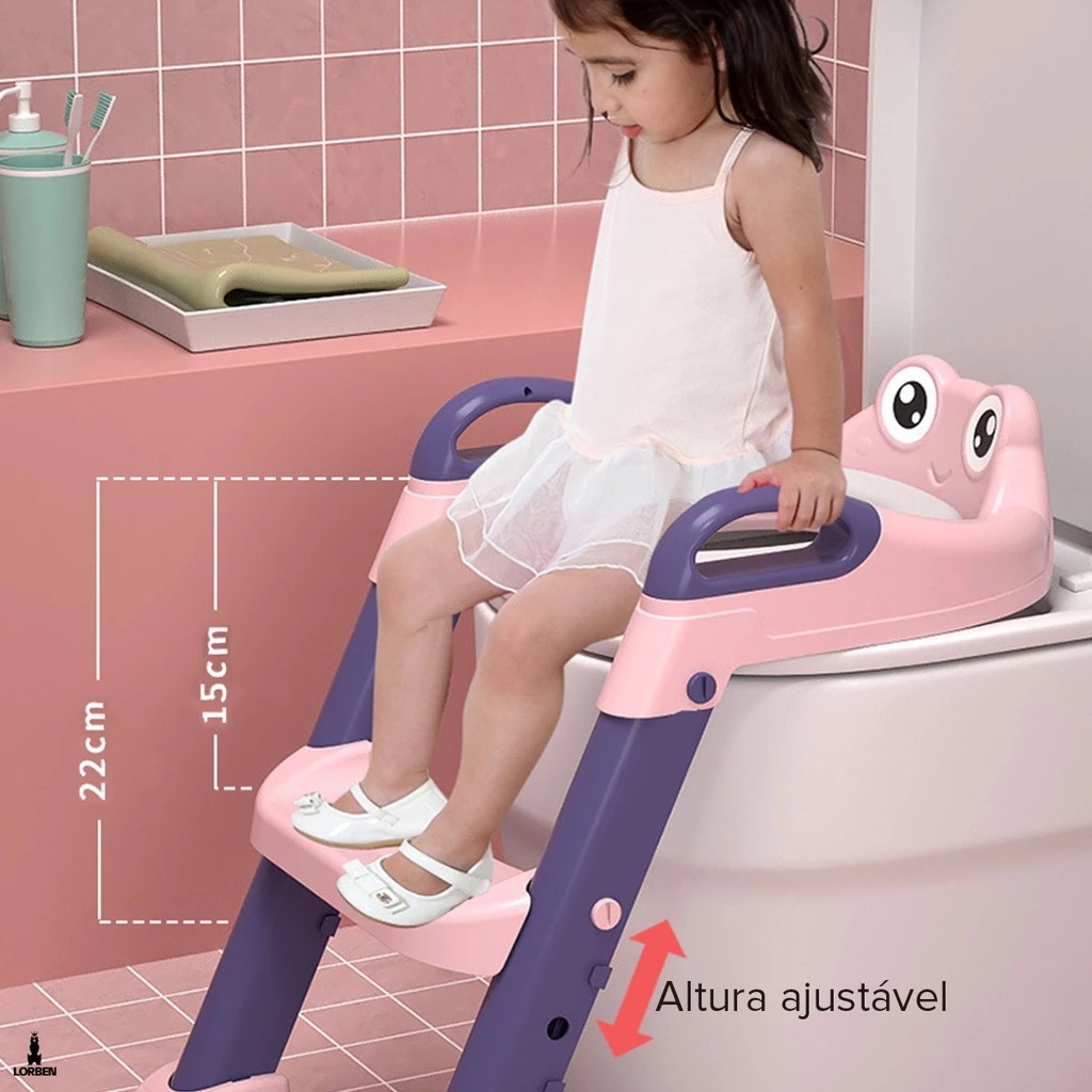 Assento Redutor Infantil Com Escada Para Vaso Sanitário Agora a fase de adaptação para o vaso sanitário vai ficar mais fácil. Proporcionando autonomia e segurança para as crianças. O assento é adequado para todos os tipos de vasos, com formato ergonômico, assento almofadado, evita o contato direto com o vaso, possui apoio para as mãozinhas e uma base antiderrapante. Dobrável, fácil de guardar em qualquer cantinho. Ele é compatível com vasos de tamanho padrão ou alongado, em formatos V, U e O. O degrau do meio possui dois ajustes de altura, onde ele corre nas colunas laterais, e você fixa na altura desejada com os parafusos que acompanham o produto. Idade recomendada para uso: De 1 a 6 anos (com supervisão de um adulto) Peso máximo recomendado: Até 20Kg Material: Polipropileno + PVC. Acompanha manual de instruções para montagem adequada.