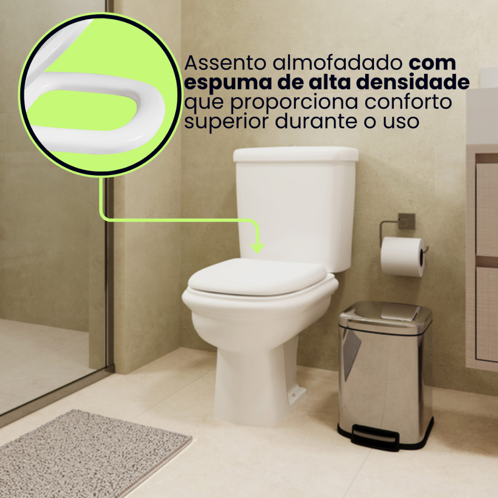 Assento Sanitario Almofadado Basico Retangular Icasa Sabatini 6LPF