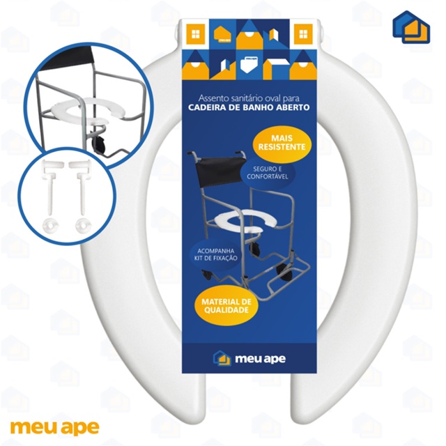 🚽 ASSENTO PARA CADEIRA DE BANHO COM ABERTURA FRONTAL Estes assentos para cadeira de banho são confeccionados com matéria-prima nova, atóxica e de procedência, o que garante máximo conforto, melhor acabamento e maior durabilidade. Sua superfície lisa impede o acúmulo de sujeira e germes, além de facilitar a limpeza. Duráveis e de fácil instalação, proporcionam um manuseio higiênico do assento e do usuário. O grande diferencial deste assento é que ele foi desenvolvido através de estudos e casos reais de pessoas, testados e aprovados por quem realmente precisa! Feito com material de qualidade e muito reforçado com acessórios metálicos, sem contar que é feito em cima de informações técnicas de médicos, fisioterapeutas e engenheiros fazendo com que tenha maior conforto e fácil utilização sem muito esforço físico. Possui reforço mecânico na parte inferior do assento, ocasionando uma maior resistência e mais segurança. Adaptável a todas as cadeiras de banho convencionais do mercado. - Dimensões: 39 x 44 - Distância entre os parafusos: 15 cm - Tipo de Material: Polietileno - Tipo de Material da Fixação: Nylon - Suporta até 100 kg - Cor: Branco 📌 CONTÉM: 1 Assento sanitário para cadeira de banho aberto 1 Kit de Fixação