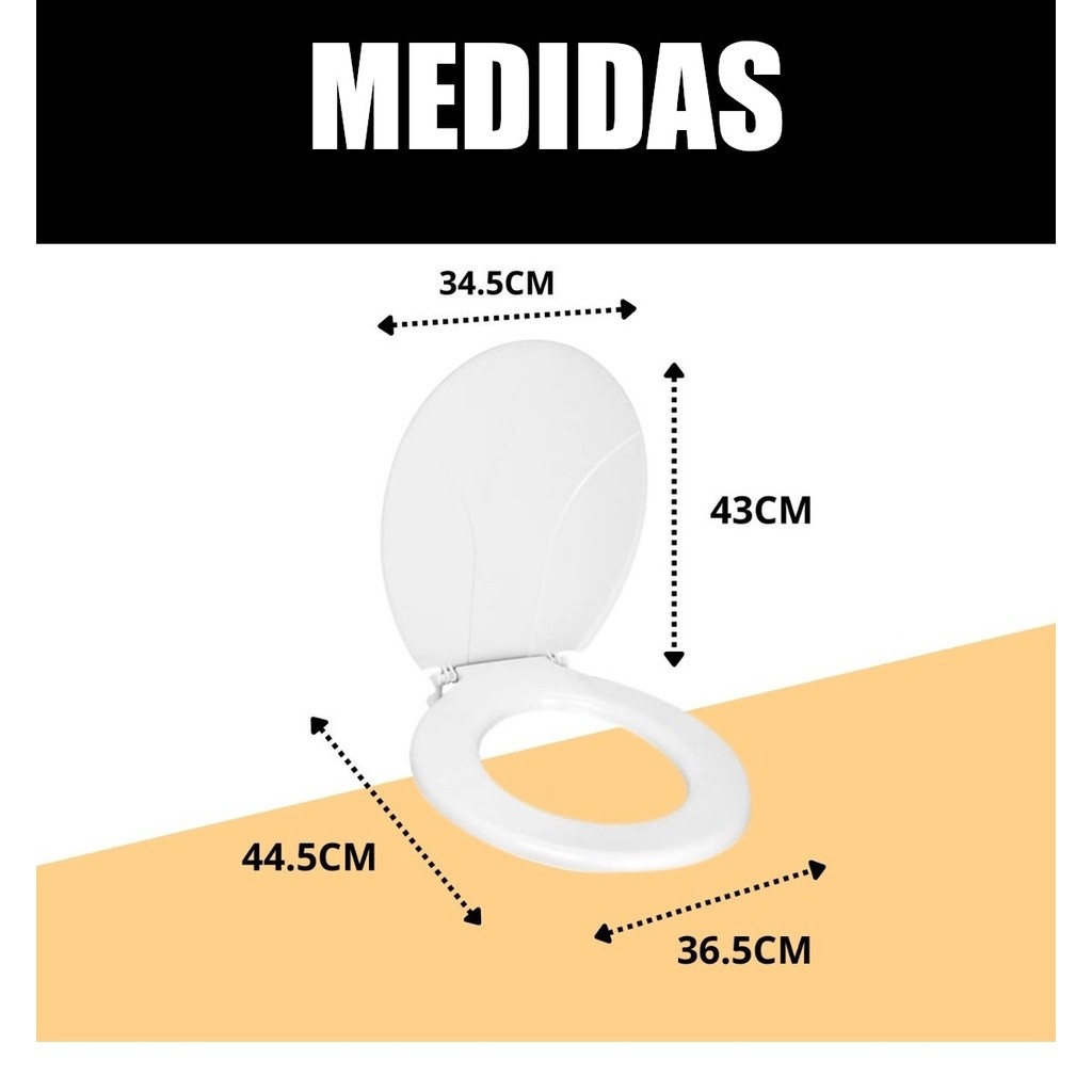 XXX PRODUTO A PRONTA ENTREGA NO BRASIL XXX ------ ENVIO MAIS RÁPIDO DA SHOPEE ------------ ** Comprando até 15:50 ENVIAMOS NO MESMO DIA ** ** Produto Original com Nota Fiscal ** ** Compra Garantida pela Shopee ** ** Você 100% Satisfeito ou seu dinheiro de volta ** ASSENTO SANITÁRIO PRÁTICO OVAL UNIVERSAL Assento sanitário com fácil instalação, confortável e prático! Possui fixadores ajustáveis a todos os vasos sanitários ovais, possui um modelo universal que cobre o vaso por completo. O Assento Prático possui a tampa e o assento liso para facilitar a limpeza no dia a dia, e é feito com um material plástico muito resistente e 100% reciclado. -Fácil instalação -Confortável -Fixadores ajustáveis a todos os vasos sanitários ovais (Universal) -Higiênico CARACTERÍSTICAS: Modelos: Universal Material: Polipropileno (PLÁSTICO RESISTENTE) Comprimento: 445mm Largura: 365mm Altura do Assento Fechado: 30mm Altura do Assento Aberto: 430mm Peso: 0.5 kg Cor: Branco