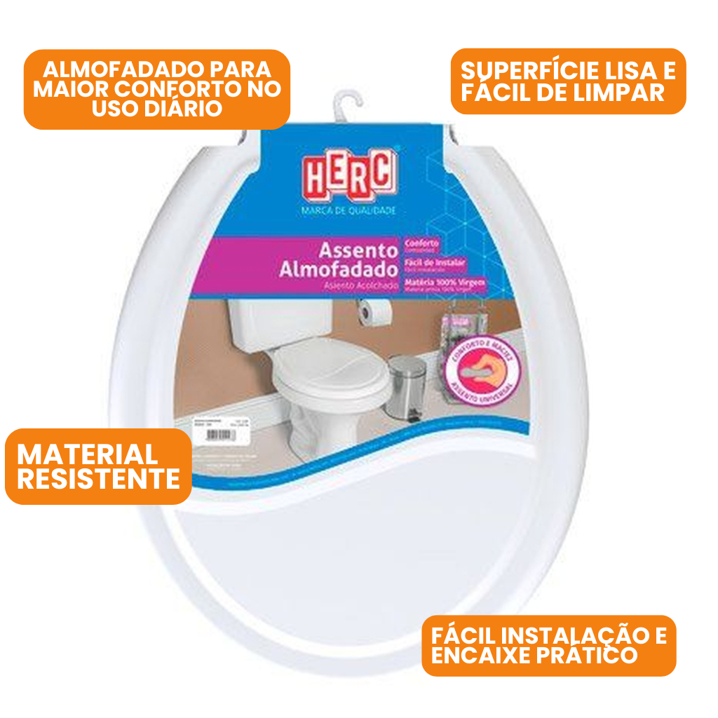 | Assento Sanitário Tampa de Vaso Almofadado HERC Branco Preto Bege C... este produto | R$ 54,00 | 10% | 4.0/5 | — |
