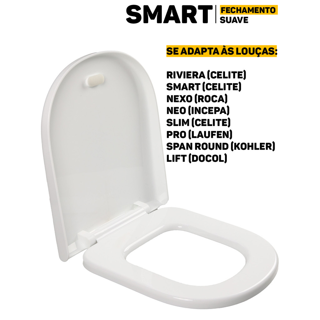 Assento Sanitário Tampa De Vaso Smart Fechamento Suave Modelo D Roca Deca Celite Icasa Atlas Premium