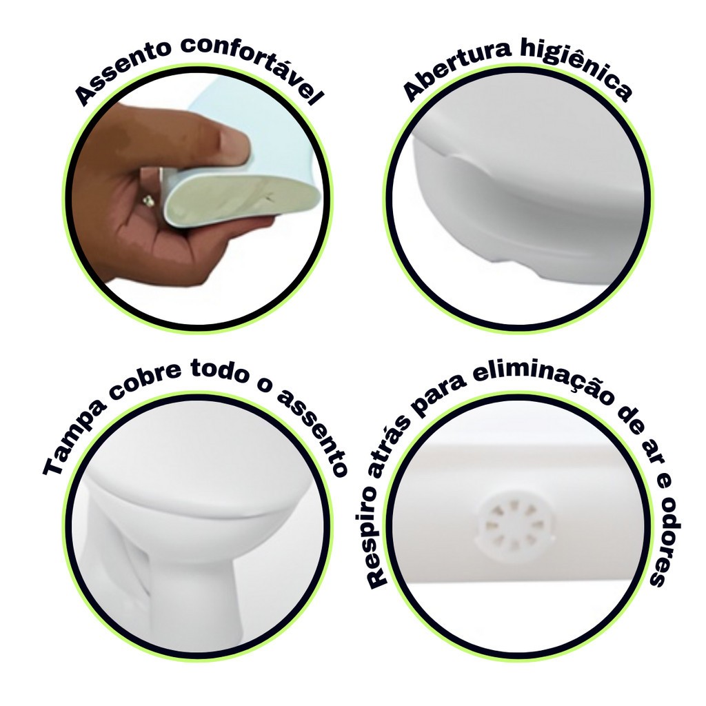 O Assento Sanitário Almofadado Florenza proporciona um excelente custo-benefício para aqueles que valorizam o conforto.Equipado com abertura higiênica, instalação simplificada e um design exclusivo, este assento também incorpora tecnologia de respiro para eliminar odores indesejáveis.Seu acabamento impecável e design elegante, em conjunto com a textura fosca, garantem resistência e facilitam a manutenção.Com uma superfície lisa que impede o acúmulo de sujeira, a limpeza torna-se uma tarefa simples e rápida. Caracteristicas: Cor: Preto; Marca: Alumasa; Modelo:Florenza Produto: Assento sanitário almofadado; Material: Plástico; Tipo de Material: Polipropileno, EVA e Poliuretano; Compatibilidade: Universal Para Vasos Ovais; Altura do assento fechado: 2,90 cm; Largura do assento: 37,70 cm; Comprimento do assento: 44,40 cm; Compatibilidade Universal: Incepa, Celite, Deca, Icasa, Logasa, Ideal, Standard, Roca, Santa Clara , fiori entre outras. Instalar a Tampa do Vaso em 3 Passos: 1. Destaque os parafusos incluídos no conjunto de fixação. 2. Posicione os parafusos nos orifícios correspondentes na parte traseira da tampa. 3. Instale uma porca em cada parafuso, rosqueando-as até ficarem firmemente fixadas. AGUARDAMOS SUA COMPRA!