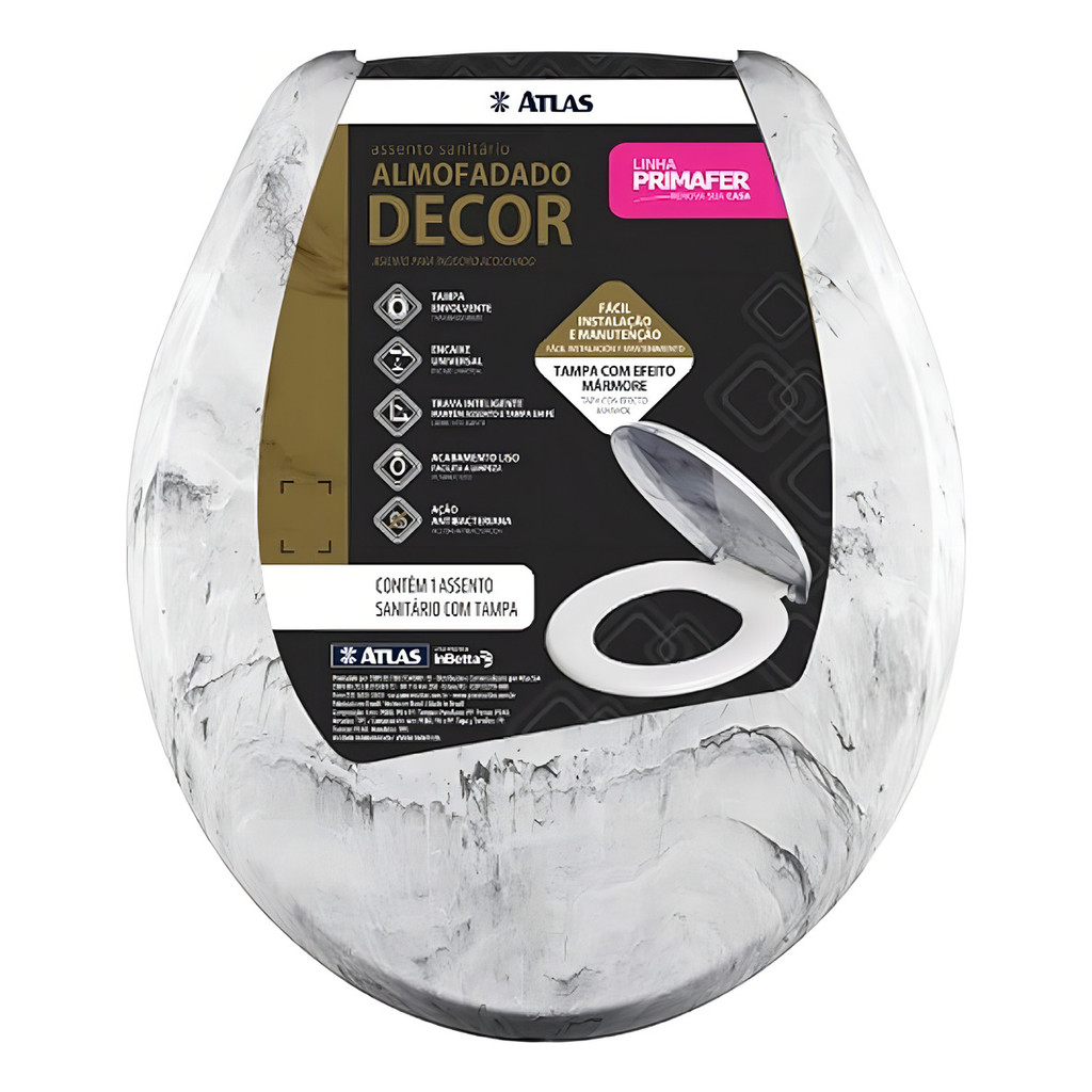 ASSENTO ALMOFADADO OVAL EFEITO MARMORIZADO DISTANCIA ENTRE PARAFUSOS: 15CM Características Gerais Acabamento: Efeito Mármore Dimensões (C x A x L): 44 x 4 x 37 cm Linha: Primafer Fabricante: Atlas Formato: Oval Indicação de uso: Assento sanitário que se adapta às louças convencionais. Ideal para consumidores exigentes que procuram produto de alta qualidade, resistente, fácil de limpar e decorativo. Combina perfeitamente com ambientes marmorizados