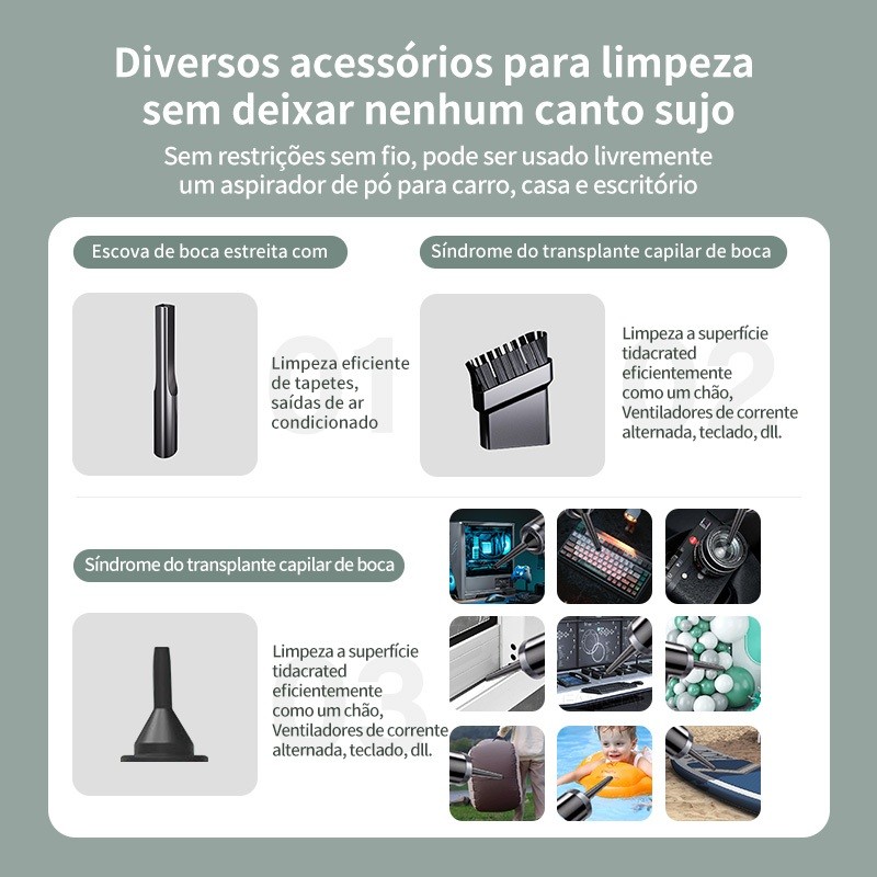 👑 Bem-vindo à loja oficial Astgn X Basike. Todos os produtos na loja são produtos originais Basike ✨Sua satisfa ção é a nossa prioridade e a avaliação de 5 estrelas é aparecida 💢Dever-se notar que quaisque problemas de produto exigem um vídeo de unboxing para ser apresentado Informações do produto: Nome do Produto: Aspirador de pó sem fio Material: ABS Potência do Motor: 120W Tensão aplicável:110/220V disponíveis Tamanho do Produto: 154*147*55mm Peso do Produto: Aproximadamente 215g Capacidade do Recipiente de Pó: 0.1L Fonte de Alimentação: Carregamento USB Porta de Carregamento: Micro Potência de Sucção: 3000pa Capacidade da Bateria: 2000MAH Tempo de Trabalho: Funcionamento contínuo por 30 minutos Tempo de Carregamento Completo: 1.5 horas Conteúdo da Embalagem: Unidade Principal do Aspirador de Pó *1 Filtro HEPA *1 Recipiente de Pó *1 Cabo de Carregamento *1 Bocal Estreito Estendido *1 Escova *1 Bocal de Sopro de Ar *1 Manual do Usuário *1 Certificado de Conformidade *1 Caixa de Embalagem *1
