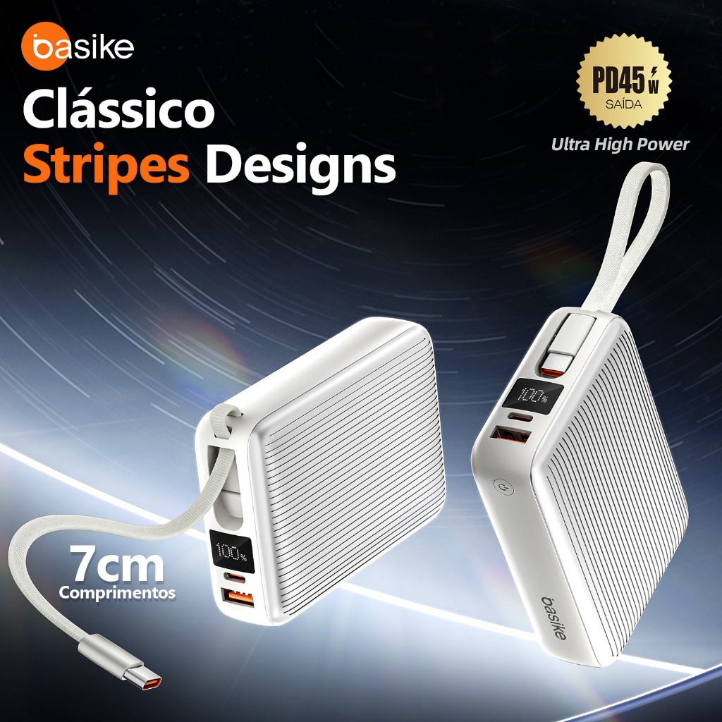 👑 Bem-vindo à loja oficial INOVA & BASIKE. Todos os produtos na loja são produtos originais INOVA & BASIKE ✨Sua satisfa ção é a nossa prioridade e a avaliação de 5 estrelas é aparecida 💢Dever-se notar que quaisque problemas de produto exigem um vídeo de unboxing para ser apresentado Caracteristicas ·Osprodutosutilizamchipsinteligentese carregam com mais seguranca. ·Nucleodealtaqualidadeoferecendomaiorvidautilaoproduto. Design compacto,facil detransportareusar. ·Construidocomcabosintegradosdealtaresistencia. ·AsaidaTipoCsuporta descarfa ate45w,idealpara notebooks.Compativel com iphones15e16etodososmodelosdeAndroid. O cabo Tipo Cintegrado suporta entrada de carga rapida,carregue diretamente emumcarregadorturbo. ·Osprodutosadotam aparencia dedesign inovador,otimizammateriaisde alta qualidade e selecionam processos defabricacao de alto padrao,com rigoroso controle dequalidadeparaforneceraosconsumidoresprodutosmaiseficientes. Informacoes Tecnicas Produto:45wPDFastChargePowerBank Modelo:B203 Bateria(capacidade):20000mAh Celulas(valorindividual):10000mAh7.7VDc/77wh CapacidadeNominal:12000mAh(5V=2A) EntradaTip0C:5V3A,9V3A,12V2.5A,15V2A,20V-1.5A(30WMax) EntradaCaboTip0C:5V-3A,9V-3A,12V-2.5A,15V2A,20V1.5A(30WMax) SaidaUSB-A:5V-3A,9V-2A,10V-2.25A,12V-1.5A(22.5WMax) SaidaTip0C:5V-3A,9V-3A,12V-3A,15V-3A,20V-2.25A(45WMax) SaidaCaboTip0C:5V3A,9V3A,12V-3A,15V-3A,20V=2.25A(45WMax) SaidaTotal:5V-3AMax Avisos Importantes -Se estedispositivonaoforusadopor um longo periodo,carregue-oaomenos1 vezpormesparamantera saudedabateria. -Podeproduzirumlevecalorduranteocarregamento,oqueénormaldesdeque estejaabaixode55oC. -Mantenha sempreestedispositivosecoenaoolimpecomagentesquimicos. -Quandonecessario,descarteo dispositivo em localadequado. -Mantenha longedo alcance decriancasepets. -Eviteimpactos,quedaseaexposicao aocalorexcessivoouaumidade. -Naooutilizeparacarregardispositivoscomcorrenteevoltagemincompativeis, oquecausara incendioou outrosproblemas. Cuidados Naodesmonte,nao abraenaotentefazermanutencaoporcontapropria; Abaterianaodeveserexpostaacondicoescomoluzsolaroucalorexcessivo; Utilizeumafontedecarregamentoadequadaaocarregarodispositivo; Quandooproduto for usado,eledeve ser colocado na mesa de trabalho.Se precisarentrarem contatocomocorpohumano,o tempodecontatodeveser menorque1os. ·Naoexponhaestedispositivoa condicoesdemuita umidade.
