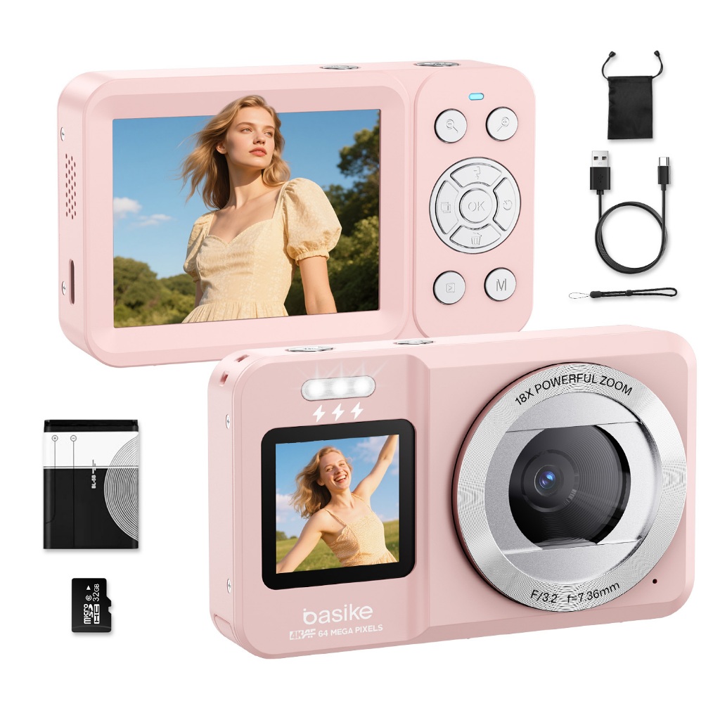 Astgn X Basike Câmera Digital 64 megapixels 4K Selfie Zoom 18X Com Tela Flip De 180 Vlog