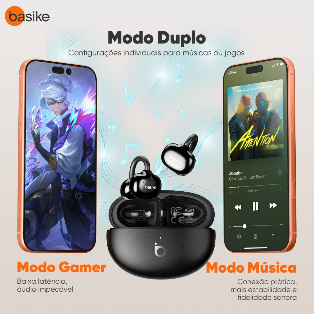 Bullets / Principais Benefícios • Bluetooth 6.0 ultraestável para conexão rápida e confiável • Autonomia de até 30 horas com o estojo de carga — música o dia todo • Cancelamento de ruído ENC para chamadas mais limpas e claras • Resistência IPX5, perfeito para uso em treinos, suor e pequenas gotas d’água • Design leve e compacto, fácil de encaixar e confortável para longos períodos • Microfone embutido para atender ligações sem tirar os fones • Emparelhamento automático: retira do estojo e conecta automaticamente • Compatível com iOS e Android, adaptável para celulares, tablets e PCs Características e Diferenciais • Tecnologia de conexão avançada — o Bluetooth 6.0 garante maior estabilidade e menor latência, ideal para ouvir música, assistir vídeos ou fazer chamadas sem travamentos. • Energia para dar e vender — com até 30 h de autonomia (considerando recargas via estojo), você não precisa se preocupar em recarregar o tempo todo. • Cancelamento de ruído ENC (Environmental Noise Cancellation) — reduz ruídos indesejados durante chamadas, tornando a conversa mais nítida mesmo em ambientes movimentados. Conforme anúncio no Mercado Livre para esse modelo: “redução de ruído de chamada (ENC) com microfones duplos.” Mercado Livre • Resistência a suor e respingos — graças à classificação IPX5, você pode usar o fone durante atividades físicas sem medo de danificá-lo. • Conforto e ergonomia — o design leve e bem encaixado proporciona bom ajuste no ouvido, sem incomodar em uso prolongado. • Uso prático no dia a dia — microfone integrado, controles táteis (toque) para pausar, avançar música, atender chamadas, e emparelhamento inteligente. Descrição Sinta liberdade total com o Basike BA-FON349, um fone de ouvido sem fio que combina tecnologia de ponta, autonomia e conforto — ideal para treinos, trabalho ou lazer. Com Bluetooth 6.0, você tem uma conexão mais estável e rápida, eliminando quedas e atrasos. O estojo de carga garante até 30 horas de duração, então você pode usar o fone por longos períodos sem depender de tomada constante. O cancelamento de ruído ENC (com microfones duplos) filtra o som ambiente durante ligações, oferecendo áudio mais limpo e clareza na voz. Além disso, o BA-FON349 tem resistência IPX5, protegendo contra suor e respingos — perfeito para academias, corridas ou uso no dia a dia. Seu design é leve e ergonômico, assegurando conforto nos ouvidos mesmo por muitas horas. Com o microfone integrado, você atende chamadas diretamente pelo fone, sem precisar tirar o celular do bolso. E tem mais: basta retirar os fones do estojo e eles emparelham automaticamente com seu dispositivo. Compatível com iOS e Android, o BA-FON349 é uma escolha versátil para quem busca qualidade sonora, praticidade e durabilidade sem gastar demais. Ficha Técnica Marca / Modelo: Basike BA-FON349 Versão Bluetooth: 6.0 Cancelamento de Ruído: ENC (microfones duplos) Autonomia: Até ~30 horas (com estojo) Resistência à Água: IPX5 (resiste a suor e respingos) Microfone: Integrado (para chamadas) Emparelhamento: Automático ao retirar do estojo Compatibilidade: iOS, Android (Bluetooth standard)