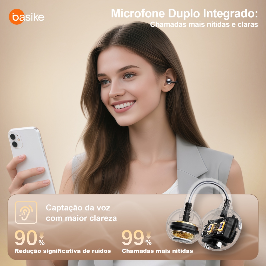 Astgn X Basike Fones de Ouvido Clip-on, Bluetooth 5.4, Cancelamento de Ruído ENC com Dois Microfones