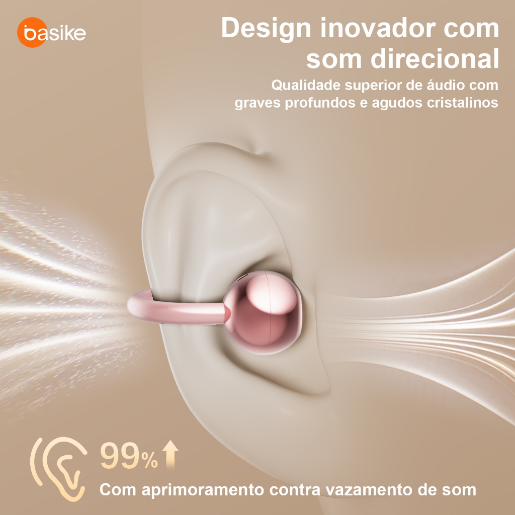 Astgn X Basike Fones de Ouvido Clip-on, Bluetooth 5.4, Cancelamento de Ruído ENC