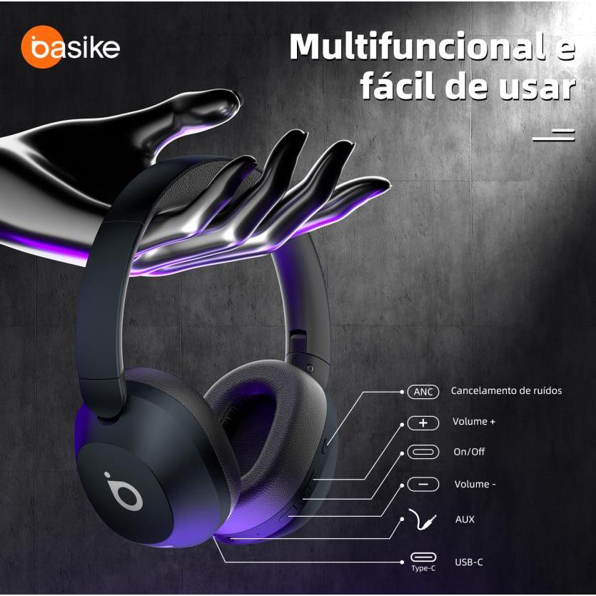 Astgn X Basike Headphone Bluetooth Redução De Ruído Do Anc Com Microfone F5Duração 30 horas