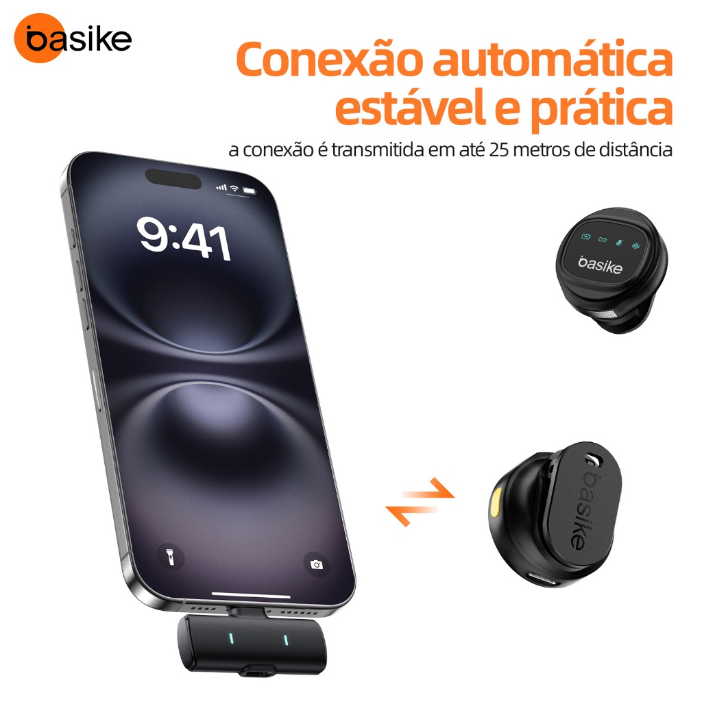👑 Bem-vindo à loja oficial Astgn X Basike. Todos os produtos na loja são produtos originais Basike ✨Sua satisfa ção é a nossa prioridade e a avaliação de 5 estrelas é aparecida 💢Dever-se notar que quaisque problemas de produto exigem um vídeo de unboxing para ser apresentado Microfone de Lapela Sem Fio com Redução de Ruído – Compatível com Android e iPhone (Lightning e USB-C) Alta qualidade sonora, conexão automática e uso profissional Descrição do Produto: Este microfone de lapela sem fio é a solução ideal para quem precisa gravar áudio com clareza, praticidade e mobilidade. Compatível com dispositivos Android (USB-C) e iPhone (Lightning), ele funciona com tecnologia Plug and Play, sem necessidade de apps ou conexões via Bluetooth. Projetado para quem cria conteúdo, faz transmissões ao vivo, entrevistas, videoaulas ou chamadas em vídeo com qualidade profissional. Principais Características: Compatível com smartphones Android (USB-C) e iPhone (Lightning) Transmissão sem fio via frequência 2.4 GHz estável e com baixa latência Captação de som limpa com tecnologia de redução inteligente de ruído Microfones duplos inclusos: grave duas pessoas ao mesmo tempo Conexão automática: basta conectar o receptor e começar a gravar Alcance de transmissão de até 25 metros Clipe magnético para fixação prática e segura na roupa Bateria com autonomia média de 2 a 3 horas por microfone Case de carregamento compacto e portátil com recarga via USB-C Funções Inteligentes: 1 toque no botão: ativa ou desativa o cancelamento de ruído 2 toques: modo silencioso (mute) 3 toques: efeito de reverberação para gravações com som ambiente Especificações Técnicas: Tipo: Microfone omnidirecional (captação em 360°) Sensibilidade: -38 dB ± 2 dB Resposta de frequência: 100 Hz a 10 kHz Relação sinal-ruído: >58 dB Tempo de carregamento: cerca de 1 hora Latência: inferior a 20 ms Conexões disponíveis: USB-C (Android) e Lightning (iPhone) Conteúdo da Embalagem: 2 microfones sem fio com clipe magnético 1 receptor com conexão USB-C ou Lightning (conforme versão escolhida) 1 estojo de carregamento portátil 1 cabo USB-C para recarga Manual do usuário Ideal para: Criadores de conteúdo em redes sociais Professores, jornalistas, apresentadores e influencers Gravações externas, entrevistas, podcasts, videoaulas e reuniões online Garantia do vendedor: 30 dias Atenção: O produto não vem com um compartimento de carga