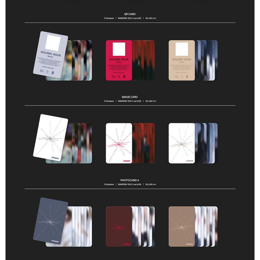ATEEZ - 11th Mini Album [GOLDEN HOUR : Part.2] (POCA ALBUM VER.) 📅Release Date : 15 / 11 / 2024 ❌IT DOESN'T INCLUDE CD❌ 💕Inclusion - Photo Stand : 1ea - QR Card : Random 1ea - Image Card : Radnom 1ea - Photo Card A : Random 1ea - Photo Card Z : Random 1ea - Sticker : 2ea - User Guide : 1ea - Digital Content 🖤KQ SHOP (TOKTOQ) POB : Random Photocard 1ea 🐨 Welcome to ALIKO 🐨 💯 100% official and sealed products shipped from Korea ⭐ Your purchase is counted on HANTEO and CIRCLE charts 💨 Aliko provides safe packing service with love🥰 🚀 Your order will be shipped out within shipping deadline 🚀 Pre-order products will be shipped out within few days after the release 📌 Please film an unboxing video. NO REFUND WITHOUT AN UNBOXING VIDEO. 📌 OUT PACKAGE is simply for protecting the product. Dent, scratches or discoloration on the out box can't be exchanged or refunded.