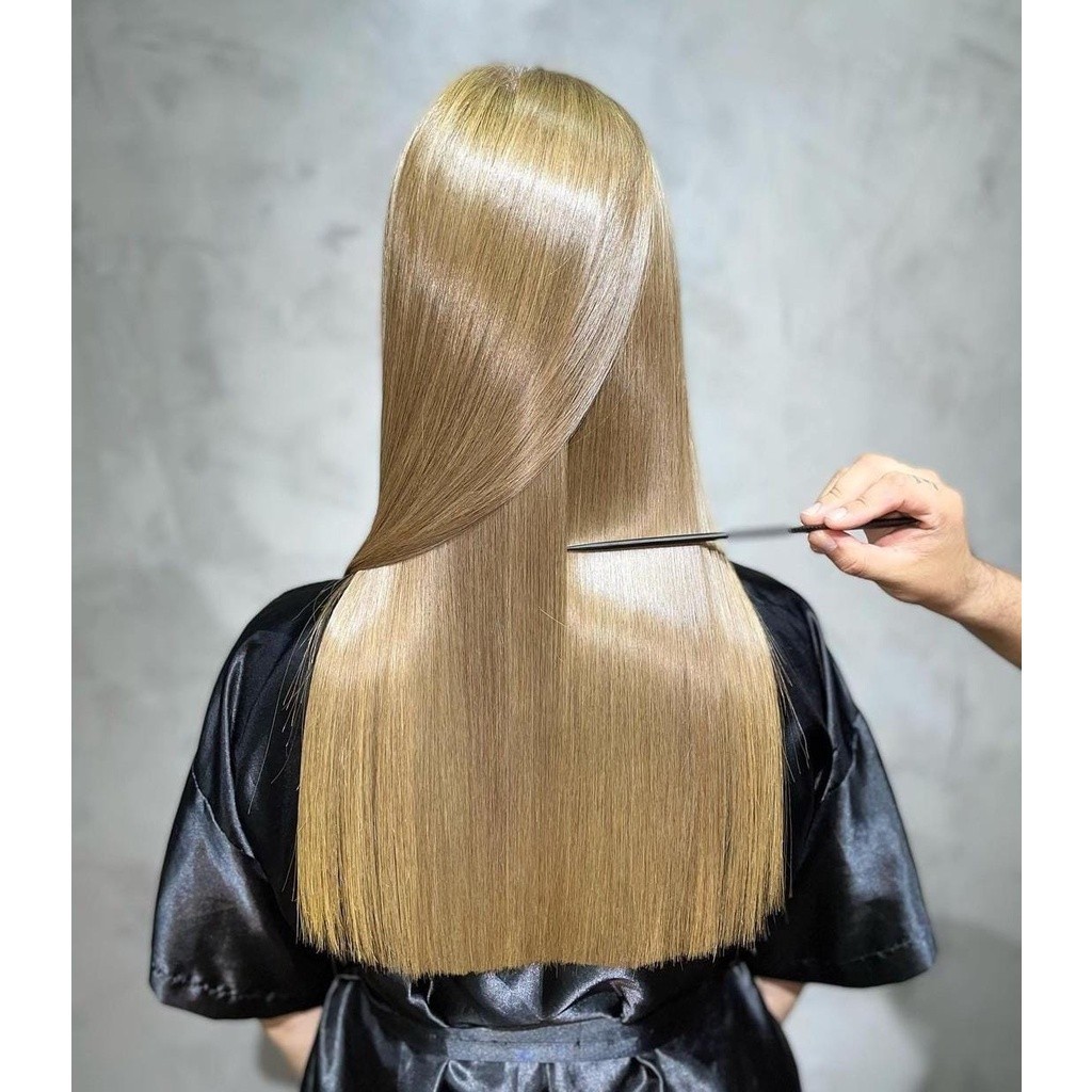 Selagem BioLiso Espelhado White 1L – Thyrre Cosmetics Efeito liso imediato, reconstrução intensa e brilho espelhado com tecnologia de alta performance. A Selagem Orgânica BioLiso Espelhado da Thyrre Cosmetics foi desenvolvida para proporcionar um alisamento eficaz com aspecto natural e saudável. Sua fórmula avançada combina Coconut Oil e um exclusivo Blend de Ácidos, promovendo o alinhamento capilar perfeito, com reconstrução da fibra, redução de volume e brilho extremo. Indicada para uso profissional, essa selagem oferece efeito liso duradouro, fios disciplinados e um toque macio e sedoso desde a primeira aplicação. Além disso, ajuda a matizar e iluminar cabelos loiros ou platinados, mantendo a cor viva e os fios saudáveis. ✨ Benefícios principais: Efeito liso imediato e natural: Deixa os fios alinhados, disciplinados e sem frizz, com resultado profissional. Reconstrução e nutrição profunda: A ação do Coconut Oil restaura a fibra capilar, devolvendo resistência e brilho. Brilho espelhado e redução de volume: A fórmula promove um acabamento radiante e fios mais leves e soltos. Matização suave: Ideal para cabelos loiros, platinados ou com mechas, realçando o tom e neutralizando amarelados. Tecnologia orgânica: Livre de formol, com ativos seguros e de alta eficácia. 👩🔬 Recomendada para: Cabelos rebeldes, volumosos ou com frizz. Fios sensibilizados por químicas que precisam de reconstrução e alinhamento. Cabelos loiros, platinados ou com mechas, que exigem controle de tom com brilho intenso. Profissionais cabeleireiros que buscam uma selagem eficiente e segura. 🧴 Modo de uso (Profissional): Lave os cabelos com Shampoo Detox Thyrre Cosmetics Retire o excesso de água com a toalha. Divida os cabelos em 4 partes. Com luvas, aplique a Selagem BioLiso Espelhado Thyrre mecha por mecha, respeitando 1 cm da raiz. Deixe agir por 1 hora. Enxágue 50% do produto. Proceda com escovação e prancheamento em mechas finas, de 8 a 15 vezes cada, conforme a estrutura do cabelo. Finalize com o Uso Essencial da Thyrre Cosmetics ⚠️ Importante: Uso exclusivo para profissionais. Gestantes e lactantes: Consultar o médico antes de usar. Teste de mecha obrigatório: Antes da aplicação completa, realize o teste em uma mecha da parte mais sensível do cabelo para verificar a resistência e compatibilidade. Use sempre luvas durante a aplicação. Não aplique se o couro cabeludo estiver irritado ou lesionado. 🧪 Precauções gerais: Manter fora do alcance de crianças. Em caso de irritação, suspenda o uso e procure orientação médica. Armazenar em local fresco, seco e ao abrigo da luz solar. Contraindicado para pessoas com sensibilidade a qualquer componente da fórmula. Composição: Aqua, Cetearyl Alcohol, Stearamidopropyl Dimethylamine, Dimethicone, Centrimonium Chloride, Acid Hyaluronic, Acid Aspartic, Cocos Nucifera Oil, Behentrimonium Chloride, Disodium EDTA, Emblica Officinalis Fruit Oil, Butyrospermum Perkii Butter, Wheat Germ Extract, Keratin Hydrolyzed, Creatine, Tocopheryl Acetate, Arginine, Glycine, Alanine, Milk Protein Extract, Hexyl Cinnamal. Linalool. Parfum. Acid Violet 43. Processo nº: 25351.554586/2021-10