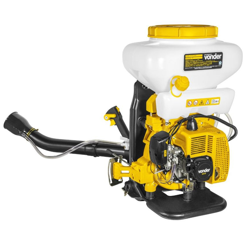 Indicado para: ✔ Aplicação de produtos químicos líquidos, em pó e granulados ✔ Prevenção de doenças em plantas ✔ Controle de pragas em grandes cultivos (algodão, trigo, arroz, frutíferas etc.) ✔ Aplicação de herbicidas, fungicidas e saneamento ✔ Desinfecção de ambientes (epidemias e prevenção) ✔ Disseminação de fertilizantes granulados ✔ Plantio de sementes para pastagens ⚠ Atenção: Não utilizar com solventes, ácidos, materiais inflamáveis ou tintas. Utilize somente acessórios compatíveis. Principais Características Equipamento portátil, flexível e de alta eficiência Tanque com capacidade de 14 litros Fabricado em plástico leve, resistente e anticorrosão Contato interno em plástico e inox, aumentando a durabilidade Boca do tanque ampla, facilitando o abastecimento Base inferior maior e centro de gravidade baixo para melhor estabilidade Acompanha bocal específico para uso como soprador Conteúdo da Embalagem 1 Atomizador 1 Tubo sanfonado 2 Tubos auxiliares 1 Tubo curvo bocal redondo 1 Bico UBV (Ultra Baixo Volume) 1 Bico simples (Alto Volume) 3 Abraçadeiras 1 Placa para produtos em pó 1 Mangueira 1 Saca volante 1 Chave de vela 1 Corrente antiestática 1 Tubo curvo bocal chato (função soprador) 1 Válvula 1 Frasco dosador 1 Tela de proteção Detalhes Técnicos Modelo: ASV 427 Motor: 41,5 cc – 2 tempos, monocilíndrico, refrigerado a ar Potência: 2,2 cv / 1,6 kW Capacidade do tanque: 14 L Alcance máximo: 12 m Vazão máxima (líquido): 2,3 L/min Vazão máxima (pó): 6 kg/min Volume de ar: 11 m³/min Velocidade do ar: 75 m/s Combustível: Gasolina comum + óleo 2T Tanque de combustível: 1,4 L Diluição do óleo: 25:1 (40 ml por litro) Rotação máxima: 6.000 rpm Partida: Manual retrátil Ignição: CDI Carburador: Tipo bóia Tipo: Costal com alça extensível Cor: Amarelo Dimensões: 500 × 365 × 685 mm Nível de ruído: 111 dB(A) Peso: 12,74 kg