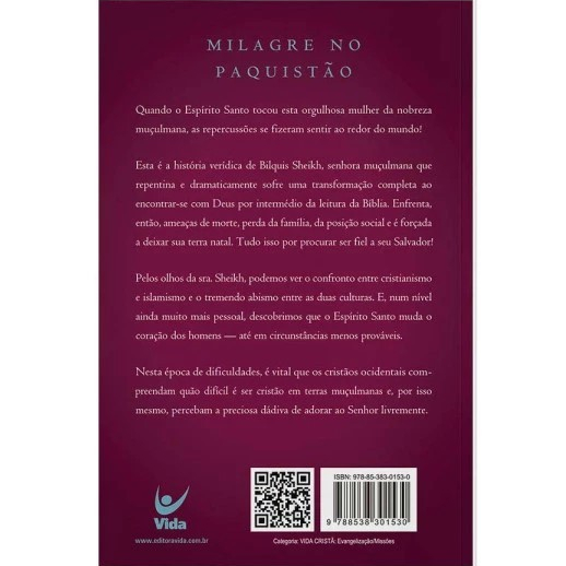 Milagre no Paquistão Quando o Espírito Santo tocou esta orgulhosa mulher da nobreza muçulmana, as repercussões se fizeram sentir ao redor do mundo! Esta é a história verídica de Bilquis Sheikh, senhora muçulmana que repentina e dramaticamente sofre uma transformação completa ao encontrar-se com Deus por intermédio da leitura da Bíblia. Enfrenta, então, ameaças de morte, perda da família, da posição social e é forçada a deixar sua terra natal. Tudo isso por procurar ser fiel ao seu Salvador! Pelo s olhos da sra. Sheikh podemos ver o confronto entre cristianismo e islamismo e o tremendo abismo entre as duas culturas. E, num nível ainda muito mais pessoal, descobrimos que o Espírito Santo muda o coração dos homens — até em circunstâncias menos prováveis. Nesta época de dificuldades, é vital que os cristãos ocidentais compreendam quão difícil é ser cristão em terras muçulmanas e, por isso mesmo, percebam a preciosa dádiva de adorar ao Senhor livremente. Peso 0.2300 Páginas 192 Dimensões 14 x 21 ISBN 9788538301530 Título Atreví-me a chamar-lhe Pai EAN 9788538301530