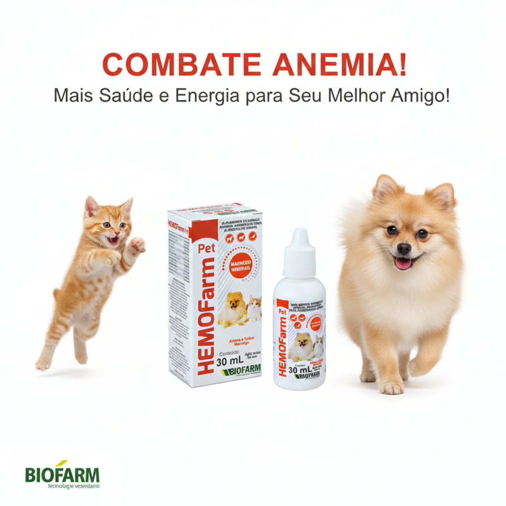 🥩 Hemofarm Pet Biofarm - Aumento de Apetite e Energia para Cães e Gatos! 🚀 ✨ Seu Pet Mais Forte, Saudável e Animado Todos os Dias! O Hemofarm Pet da Biofarm é o suplemento líquido ideal para você que busca uma solução eficaz para a falta de apetite e a baixa vitalidade do seu animal de estimação. Rico em Ferro e Vitaminas do Complexo B, ele atua diretamente na melhora da nutrição e no suporte ao crescimento saudável. Resolve a maior dor do cliente: Se o seu cão ou gato está comendo pouco e sem energia, o Hemofarm Pet é a escolha certa! 🎯 Por Que Escolher Hemofarm Pet? (Benefícios Imediatos) - Aumento de Apetite Comprovado: Graças à sua alta concentração de Ferro e Vitaminas B, estimula a vontade de comer, garantindo a ingestão dos nutrientes necessários. - Combate à Anemia e Fraqueza: Suporte essencial para animais em recuperação, gestantes, lactantes ou com deficiências nutricionais. - Mais Energia e Vitalidade: As Vitaminas B (B1, B2, B6, B12, etc.) são cruciais para o metabolismo energético. Seu pet terá mais disposição para brincar e se movimentar! - Suporte ao Crescimento: Ideal para filhotes em fase de desenvolvimento. - Fácil de Administrar: Fórmula líquida saborosa que pode ser dada diretamente na boca ou misturada na água/ração. 🐶🐱 Espécies Atendidas O Hemofarm Pet é um suplemento de uso universal, seguro e eficaz para: - Cães - Gatos - Mustelídeos (Furões) - Aves - Roedores - Répteis 🧪 Composição Potente (O Que Faz a Diferença) O diferencial do Hemofarm Pet está na sua fórmula concentrada, que inclui nutrientes essenciais para a formação de células do sangue e otimização do metabolismo. - Ferro (Mínimo 4.500,000 mg): Essencial para o combate à anemia e transporte de oxigênio. - Vitamina B12 (Mínimo 5.000,000 mcg): Fundamental para a formação das células sanguíneas e nervosas. - Ácido Fólico (Mínimo 100,000 mg): Atua na síntese de DNA e RNA e divisão celular. - Zinco (Mínimo 5.000,000 mg): Importante para a imunidade e cicatrização. - Glicose (Mínimo 100,000 g): Fonte de energia imediata ❓ Perguntas Frequentes (FAQ do Cliente) 1. O Hemofarm Pet é parecido com o Hemolitan? Sim! O Hemofarm Pet é um excelente concorrente do Hemolitan, oferecendo uma composição robusta e alto desempenho com um ótimo custo-benefício. 2. Como devo administrar o produto para meu cachorro ou gato? A administração é simples: Cães e Gatos: 1 gota por kg de peso corporal, duas vezes ao dia. ou 1 ml para cada 10 kg de peso corporal, duas vezes ao dia. 3. Qual a dosagem para aves, roedores e répteis? Aves, Roedores e Répteis: Diluir 20 gotas em 1 litro de água de bebida. ou Diluir 2 gotas em 100 ml de água. 4. Preciso de receita veterinária? Este é um suplemento vitamínico e mineral. No entanto, sempre consulte um veterinário para o diagnóstico preciso da causa da falta de apetite ou anemia e para a recomendação do tempo de uso adequado. 📦 Detalhes do Produto: - Conteúdo: Frasco com 30ml ou 125mL. - Marca: Biofarm. - Sabor: Palatável para facilitar a aceitação. Garanta agora a vitalidade e o apetite do seu melhor amigo! Clique em Comprar e veja a diferença na rotina do seu pet!