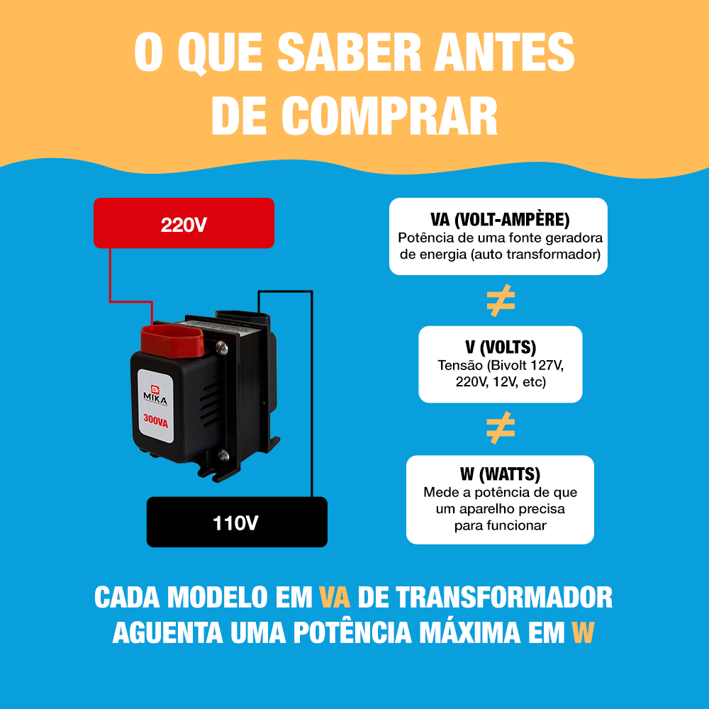 Auto transformador 200va Bivolt - Marca KF - Protetor térmico - 127 volts/220 volts ou 220 volts/127 volts - Aguenta aparelhos com potência aprox. de 140 Watts (W) - 12 Meses de garantia Os autotransformadores Mika/KF são produzidos com matéria prima da mais alta qualidade, garantindo assim melhor performance para transformar energia conforme sua necessidade. Características: - O auto transformador permite que, equipamentos que funcionam com tensões diferentes das que são fornecidas pela distribuidora de energia, possam ser acionados de acordo com a necessidade do aparelho. - Ele tem função de transformar a tensão de 220v para 127v ou de 127v para 220v, em um mesmo equipamento. - Para sua maior proteção, nossos autotransformadores possuem sistema de proteção térmica, em caso de sobrecarga, a proteção térmicaserá ativada e acontecerá o desarme automático do autotransformador; - Nossos autotransformadores são indicados para uso em diversos cenários, podendo ser: residencial, comercial e industrial; - Tomadas de 10a tripolar; Aparelhos Indicados: - Aparelho de som até 140W, alguns ventiladores pequenos, máquina de costura, máquina de cabelo, lixa de unha, etc. Informações Importantes: - Antes de adquirir seu transformador, certifique-se sobre a potência do seu equipamento e garanta o funcionamento correto dos produtos! - Caso o aparelho conectado ao transformador tenha uma potência superior a potência oferecida pelo transformador, os transformadores irão desarmar, evitando danificar seu aparelho. Itens Inclusos: - Transformador com tomadas tripolar 10a; - Conector H; - Manual; - Cabo de 90cm (tomada macho 10a bipolar e tomada fêmea 10a bipolar);