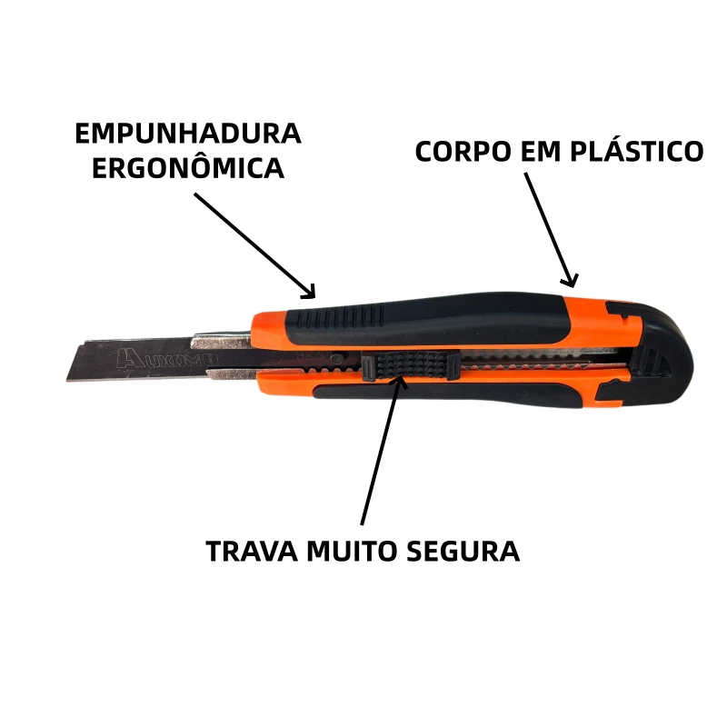 AUXOM Estilete Profissional Emborrachado Com Trava 18mm