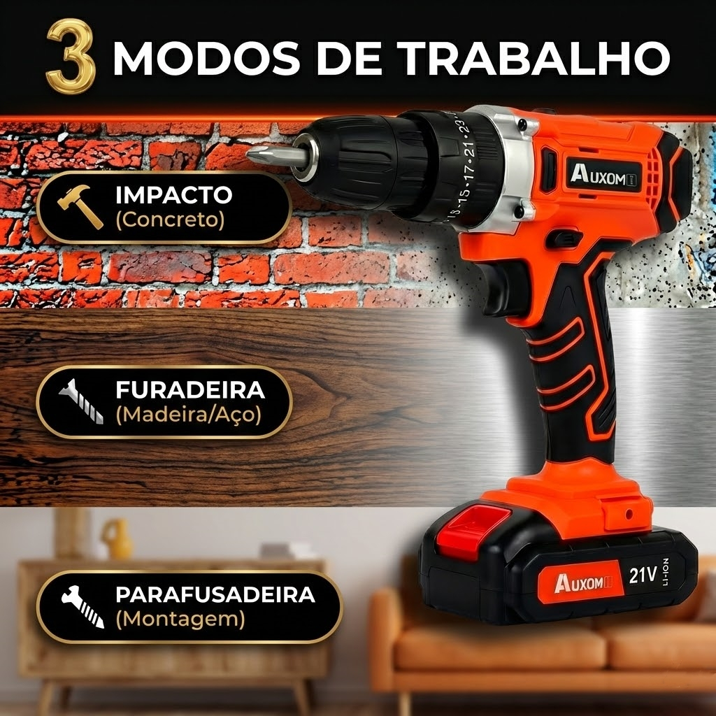🔩 BEM-VINDO À AUXOM 🔩 🧲BR Estoque no Brasil - Envio Imediato! 🧲BR Estoque no Brasil - Envio Imediato! 🧲BR Estoque no Brasil - Envio Imediato! 📦📦 PEDIDOS PAGOS GERALMENTE SÃO ENTREGUES EM ATÉ 3 DIAS, DEPENDENDO DA SITUAÇÃO. 🔧 PRINCIPAIS CARACTERÍSTICAS: 🔥 POR QUE A AUXOM SÉRIE OURO É A MELHOR ESCOLHA? (ENTENDA A FORÇA) Não se deixe enganar por furadeiras comuns (modelos de entrada) que prometem muito mas usam motores de alumínio fracos. A Auxom Black & Gold é Profissional e Robusta. Veja a diferença: 🚀 1. Motor 100% Cobre Puro (Núcleo Sólido): Enquanto outras queimam ao forçar, nosso motor de cobre entrega 120 Nm de Torque Explosivo. Ideal para iniciar furos em concreto duro, soltar parafusos emperrados e realizar trabalhos pesados sem aquecer. 💪 2. Bateria Real 6500mAh (Chip Inteligente): Esqueça as baterias de 1.5Ah que duram 20 minutos. A Auxom vem com Bateria de Alta Capacidade 21V (Série 6500) com chip de proteção, garantindo horas de trabalho contínuo. 🛠️ CARACTERÍSTICAS TÉCNICAS (PROFISSIONAL): Torque Monstro: 120 Nm (Líder Absoluto da Categoria) Motor: 100% Cobre (Mais potência e durabilidade que alumínio) Bateria: 21V Lítio (Modelo 6500mAh - Longa Duração) Autonomia: Acompanha 2 Baterias para você nunca parar o serviço. Carregador: Bivolt Automático (110V / 220V) - Funciona em qualquer tomada do Brasil! 3 Modos de Operação (Sistema 3 em 1): 🔨 Martelete (Impacto): Para furar paredes de tijolo e concreto. 🌪️ Furadeira: Para madeira, aço, plástico e cerâmica. 🔩 Parafusadeira: Com 25 níveis de torque para precisão total. Velocidade: 2 Níveis (0-450 RPM Força / 0-1500 RPM Alta Rotação) Mandril: 3/8" (10mm) de Alta Precisão - Aperto Rápido sem chave (Travamento Firme). Extras: Luz LED Integrada (Visão Noturna) + Sistema de Reversão. 📦 ITENS INCLUSOS (KIT COMPLETO 29 PEÇAS): 1 * Parafusadeira/Furadeira de Impacto 21V (Série Black & Gold - 120Nm) 2 * Baterias de Lítio 21V (Tecnologia 6500mAh) 1 * Carregador Bivolt Rápido (110-220V) 1 * Maleta de Transporte Rígida (Organização Perfeita) 1 * Eixo Flexível (Acessório Cobra para cantos difíceis) 9 * Chaves de Caixa (Soquetes: 5-13mm) 6 * Bits de Fenda/Philips (Parafusar) 6 * Brocas Helicoidais (Aço Rápido e Madeira) 1 * Adaptador de Bits 1 * Manual do Produto 💡 INDICADO PARA: Perfeito para montadores de móveis, pedreiros, instaladores de ar condicionado, furos em concreto/alvenaria, reparos automotivos e uso doméstico pesado. 🌻 SE VOCÊ TIVER ALGUMA DÚVIDA SOBRE O PRODUTO, POR FAVOR DEIXE UMA MENSAGEM PARA O SERVIÇO AO CLIENTE E NÓS RESPONDEREMOS A TEMPO!