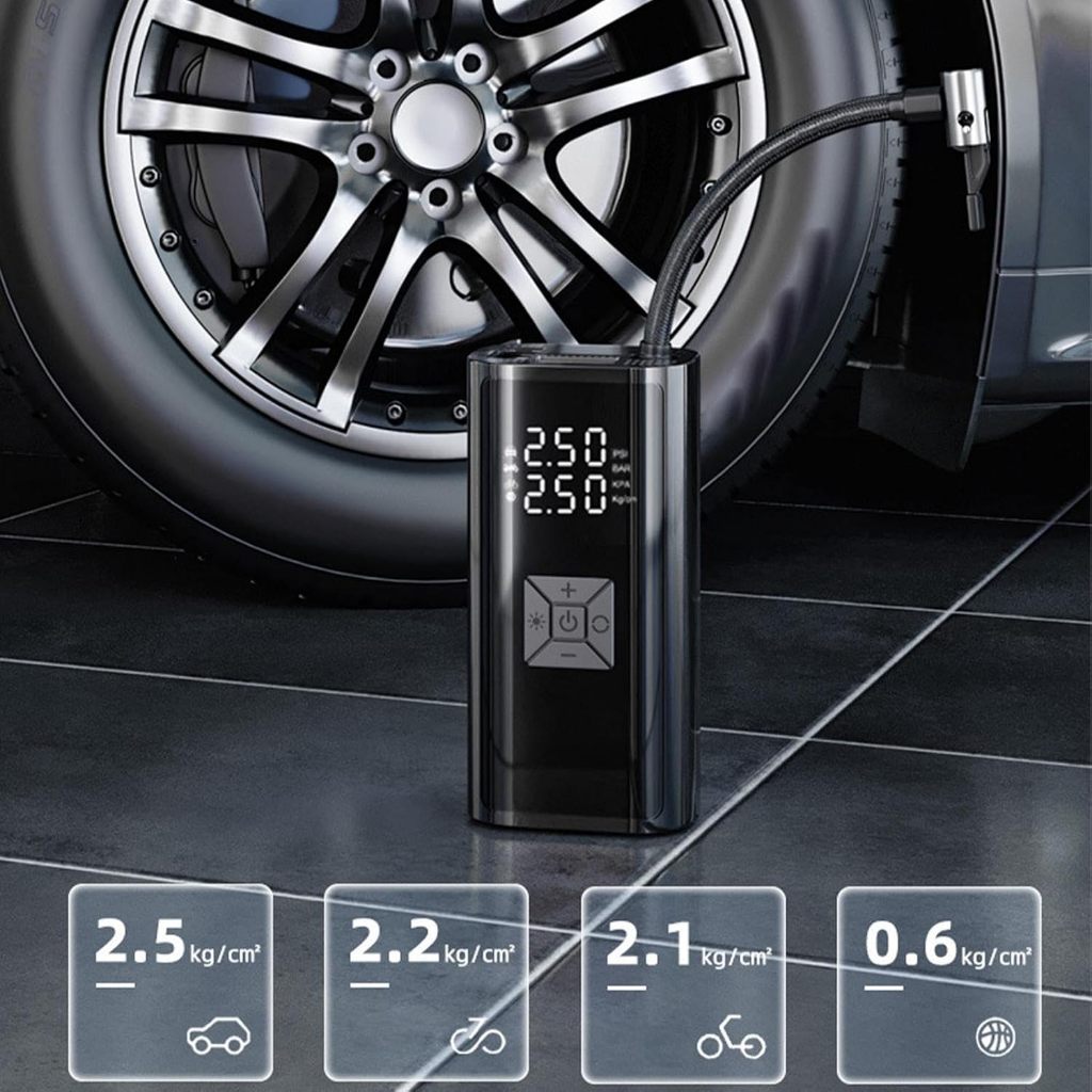 AUXOM Mini Compressor Compressor de Ar Portátil 3 em 1: Enche Pneus+Lanterna+Power Bank- 12V USB para Carro/Moto/Bike