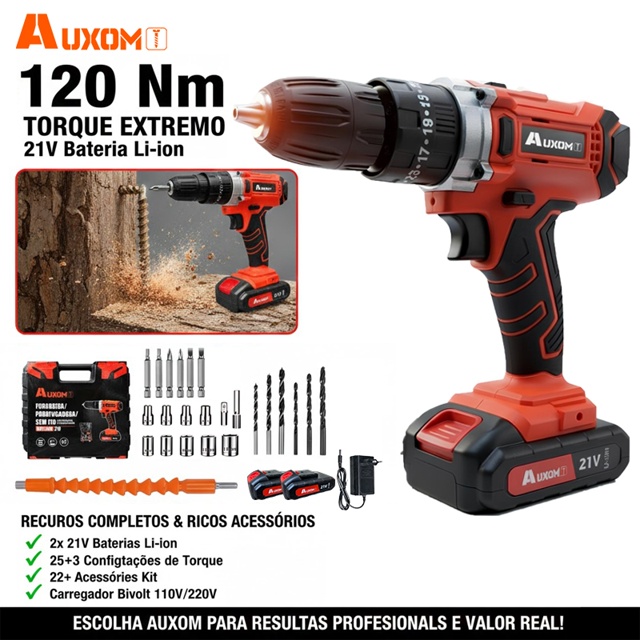 | AUXOM Parafusadeira 120Nm 21V - Furadeira de Impacto Profissional c... este produto | R$ 167,00 | 61% | 4.8/5 | 10 |