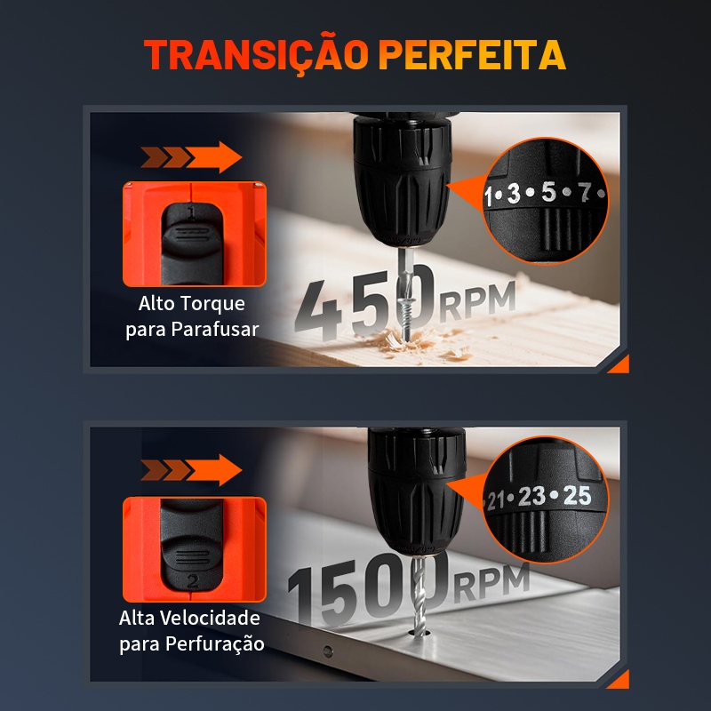 🔩 BEM-VINDO À AUXOM 🔩 🧲 EMPRESAS BRASILEIRAS LOCAS, TRANSPORTE RÁPIDO! 🧲 EMPRESAS BRASILEIRAS LOCAS, TRANSPORTE RÁPIDO! 🧲 EMPRESAS BRASILEIRAS LOCAS, TRANSPORTE RÁPIDO! 📦📦 PEDIDOS PAGOS GERALMENTE SÃO ENTREGUES EM ATÉ 3 DIAS, DEPENDENDO DA SITUAÇÃO. 🔧 PRINCIPAIS CARACTERÍSTICAS: Conjunto A: -Bateria: 21V (6500Mah) -Tipo de bateria: íon de lítio -Tensão do carregador automático: 110V / 220V Bivolt automático -Frequência: 50-60 Hz -Velocidade: 0-1500 RPM -Torque: Torque máximo 120 Nm -3 em 1: Martelo, Furação, Parafusagem -Tipo de mandril: Punho rápido: Punho rápido -Sistema reverso: Sim -Iluminação conduzida conduzida do tipo: Sim -25 Ajuste de torque de 1 passo -Função: Apertar parafusos, fazer furos, bricolagem para uso doméstico diário 📦Itens incluídos(A): 1 * 21V chave de fenda com bateria de lítio 1 * carregador(110-220v) 2 * baterias de lítio(21v) 6 * bits de chave de fenda 6 * Broca de torção de massa frita 10 * Manga 1 * tubo de extensão 1 * Manual do produto 1 * Caixa de ferramentas -------------------------------------------------------------------------- Conjunto C: -Bateria: 21V (6500Mah) -Tipo de bateria: íon de lítio -Tensão do carregador automático: 110V / 220V Bivolt automático -Frequência: 50-60 Hz -Velocidade: 0-1450 RPM -Torque: Torque máximo 55 Nm -Tipo de mandril: Punho rápido: Punho rápido -Sistema reverso: Sim -Iluminação conduzida conduzida do tipo: Sim 📦Itens incluídos(C): 1 * Furadeira Parafusadeira 21V 3 * Bits Curtos e 7 * Bits Longos 6 * Brocas 9 * Soquetes 2 * Bateria de Lítio de 1 * Carregador Rápido 1 * Caixa de Ferramentas Atenção: Antes de usar, carregue totalmente a bateria. Armazene em um ambiente com temperatura normal. 🌻 SE VOCÊ TIVER ALGUMA DÚVIDA SOBRE O PRODUTO, POR FAVOR DEIXE UMA MENSAGEM PARA O SERVIÇO AO CLIENTE E NÓS RESPONDEREMOS A TEMPO!