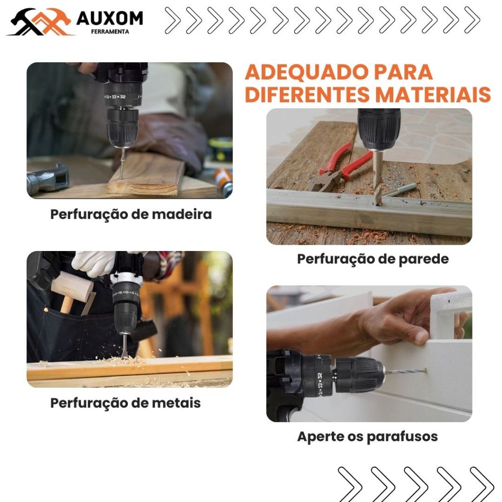 AUXOM Parafusadeira Furadeira 21V 2 Baterias Com Maleta e Acessórios Completo Ferramentas Elétri