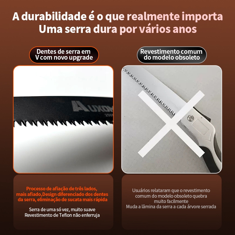 🔩 BEM-VINDO À AUXOM 🔩 🧲 EMPRESAS BRASILEIRAS LOCAS, TRANSPORTE RÁPIDO! 🧲 EMPRESAS BRASILEIRAS LOCAS, TRANSPORTE RÁPIDO! 🧲 EMPRESAS BRASILEIRAS LOCAS, TRANSPORTE RÁPIDO! 📦📦 PEDIDOS PAGOS GERALMENTE SÃO ENTREGUES EM ATÉ 3 DIAS, DEPENDENDO DA SITUAÇÃO. 🌳PRINCIPAIS CARACTERÍSTICAS: -Lâmina Tripla: Equipado com uma lâmina afiada tripla, este serrote oferece cortes precisos e eficientes. Aumente a sua produtividade na poda de galhos e árvores no seu jardim. -Design dobrável: Uma serra dobrável equipada com trava de segurança. Oferece alta qualidade sem abrir mão da portabilidade. -Construção Durável: Fabricado com materiais de alta qualidade, o serrote apresenta uma construção robusta e durável. Sua lâmina resistente e cabo de madeira proporcionam uma longa vida útil. -Design Ergonômico: O cabo de madeira proporciona conforto durante o uso prolongado, reduzindo a fadiga das mãos. O design ergonômico garante um manuseio fácil e seguro. -Lâmina 25cm com excelente afiação, dentes com três arestas de corte, que proporciona cortes com exatidão, qualidade e rapidez. A ferramenta ideal para auxílio na poda de suas plantas! 💡Indicação: Próprio para poda em jardins e em tarefas de camping. Corte de galhos em madeiras úmidas, secas e verdes. 🪚Especificações: -Material: sk5 -Dentado Grosso -Material da Alça: plástico -Dentes da Lâmina: 3 Arestas de Corte -Comprimento da Lâmina: 250 mm -Comprimento Total: 530 mm 📦Conteúdo da embalagem: 1 * Serra dobrável AUXOM 🌻 SE VOCÊ TIVER ALGUMA DÚVIDA SOBRE O PRODUTO, POR FAVOR DEIXE UMA MENSAGEM PARA O SERVIÇO AO CLIENTE E NÓS RESPONDEREMOS A TEMPO!