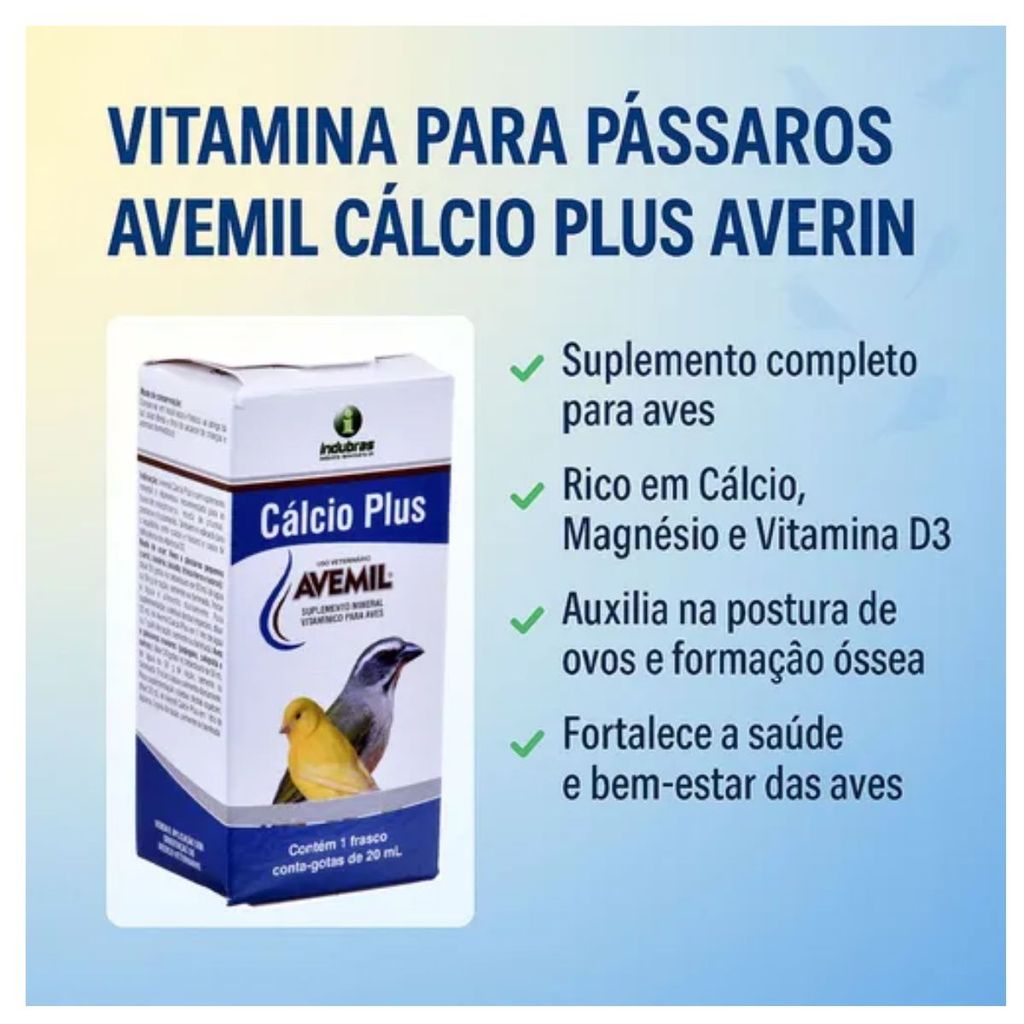 Avemil Cálcio Plus 20ml Suplemento Vitamínico Para Pássaros