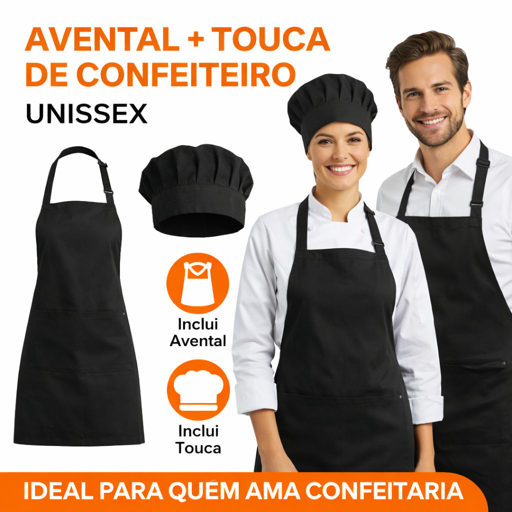 Kit Avental + Touca de Confeiteiro | Produto Profissional Cozinha. Kit Confeiteiro Personalizado Avental + Chapéu. Transforme sua experiência na confeitaria (ou surpreenda alguém especial) com um kit profissional, elegante e totalmente. Ideal para quem ama cozinhar com estilo, confeiteiros(as), cozinheiros(as), estudantes de gastronomia. O QUE ACOMPANHA O KIT: - 01 Avental profissional - 01 Chapéu de confeiteiro DIFERENCIAIS DO PRODUTO: - Visual profissional e elegante - Tecido resistente e confortável - Produção própria IDEAL PARA: 🎂 Confeiteiros(as) profissionais 🎓 Estudantes de gastronomia 🎁 Presentear com criatividade e exclusividade 🏠 Uso doméstico com padrão profissional INFORMAÇÕES DO AVENTAL: Tamanho adulto Ajuste no pescoço Amarração traseira Tecido confortável e resistente Qualidade ARRAZZA BORDADOS. GARANTA O SEU AGORA! Um kit que une profissionalismo, identidade e estilo. Clique em Comprar Agora e leve seu nome para a cozinha! Tags: Touca de confeiteiro Chapéu de chef Acessório para cozinha Higiene alimentar Profissionalismo na cozinha Proteção contra cabelos e partículas indesejadas Algodão ou poliéster de qualidade Faixa ajustável Conforto e praticidade Símbolo de status na cozinha Ideal para chefs, confeiteiros e cozinheiros em geral.