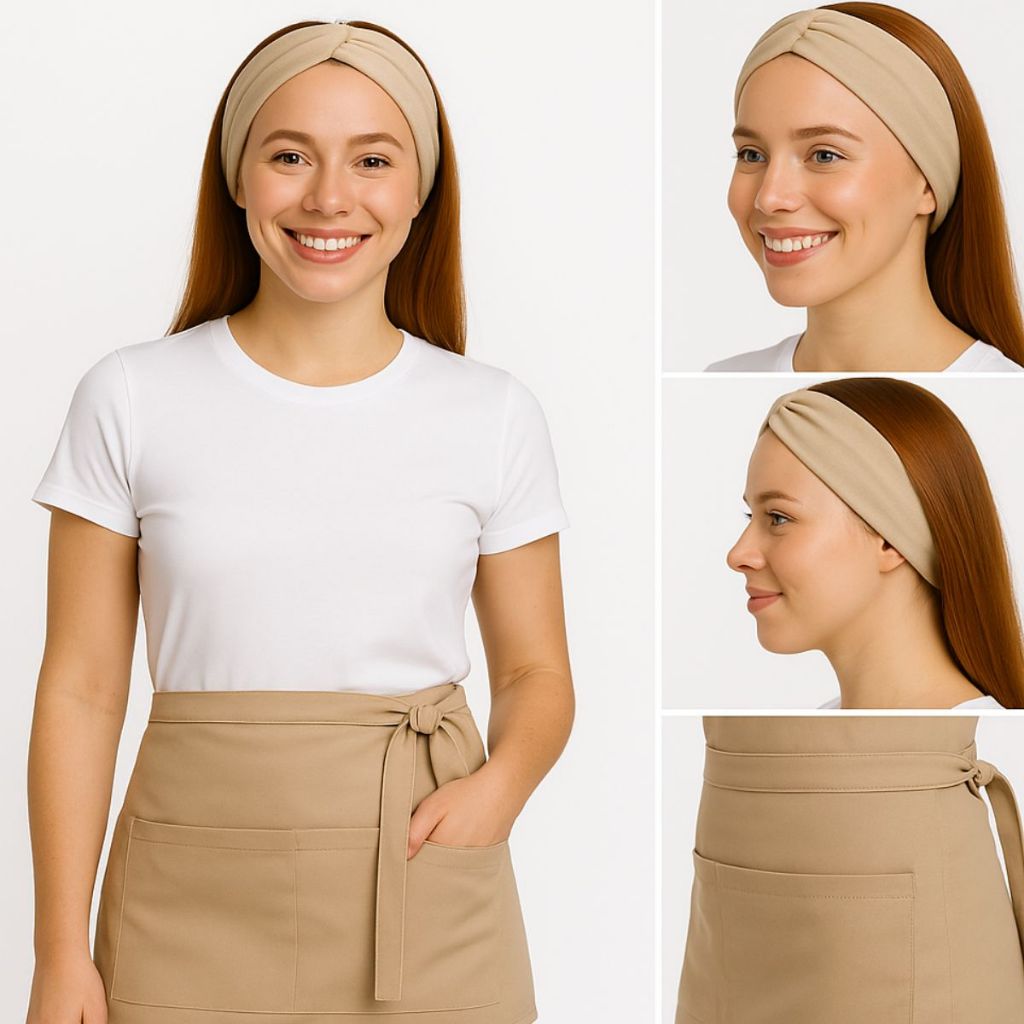 Avental de Cintura e Faixa de Cabelo Chef Confeitaria e Cozinha